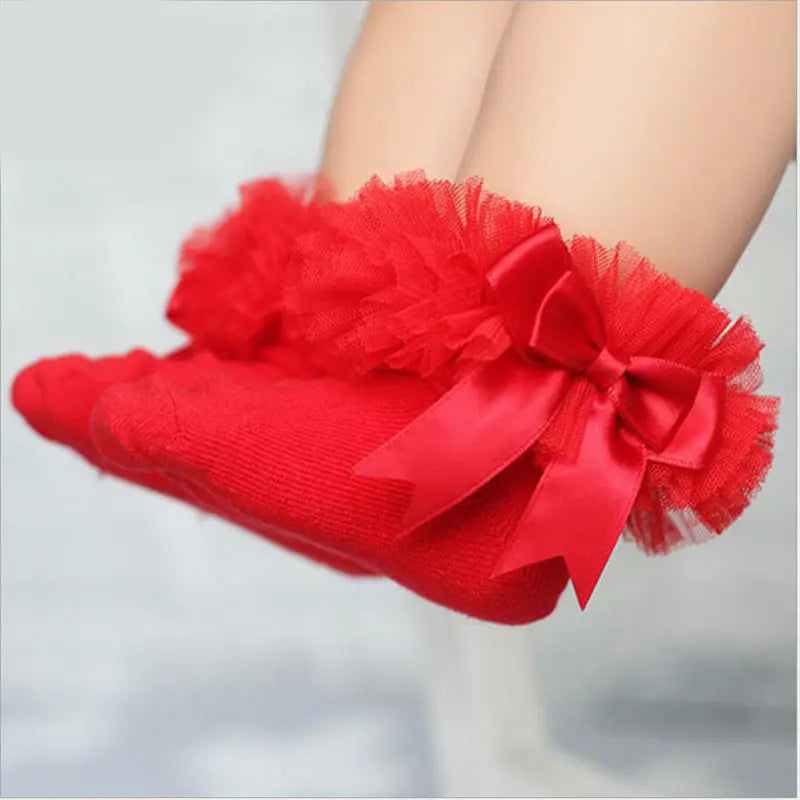 Chaussettes bébé fille avec nœud papillon dentelle à volants princesse coton chaussette avec rubans Multi couleurs gris rouge noir rose blanc
