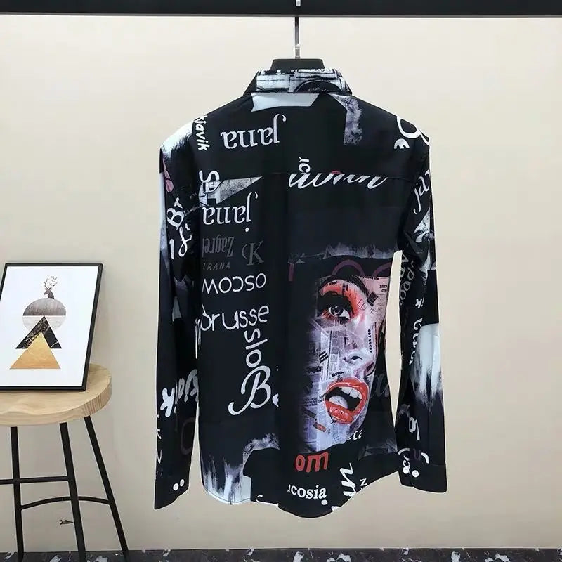 Chemise à manches longues à col rabattu pour hommes, cardigan boutonné High Street, impression de lettres, mode décontractée, printemps, automne, nouveau