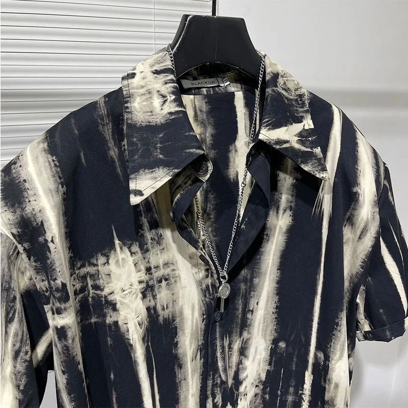 Chemise décontractée à manches courtes pour hommes, col à volants surdimensionné, impression de embaulourde, polyvalent, chic, style punk, été, nouveau, 2024
