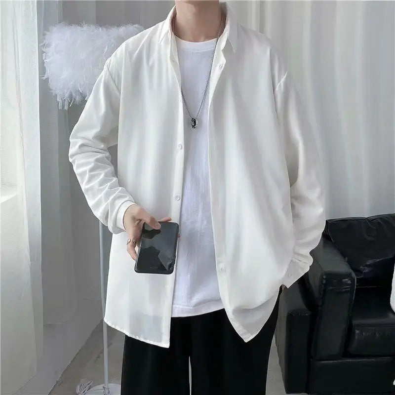 Chemise décontractée de style Hong Kong pour hommes, haut minimaliste, col rabattable, document solide, léger, printemps, été, 2024