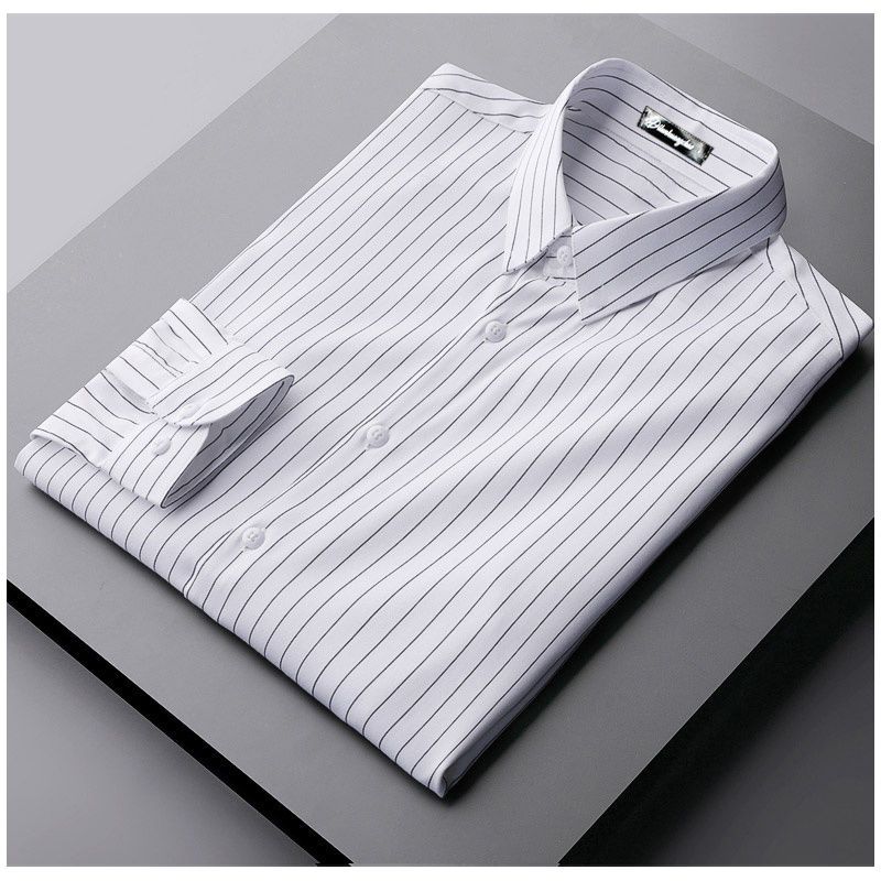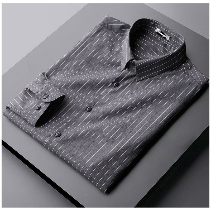 Chemise polyvalente à manches longues pour hommes, robe d'affaires décontractée, sans fer, col polo, rayure, mode coréenne, printemps et automne, nouveau, 2023