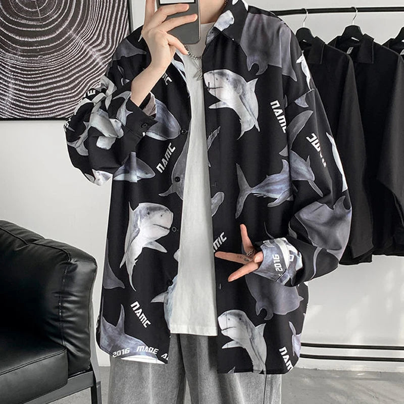 Chemises à col rabattu à manches longues pour hommes, impression Aadt, beau printemps, mode d'été mince, streetwear décontracté, vêtements à boutons