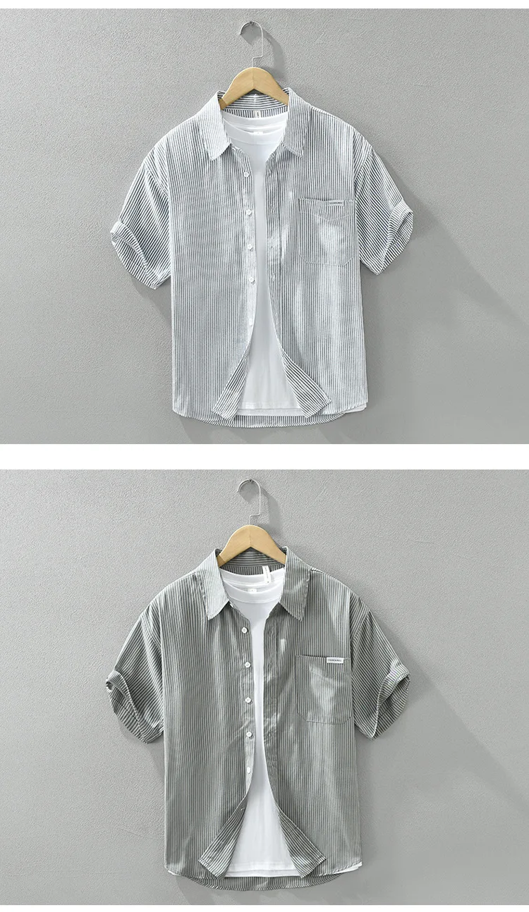 Chemises Cargo à Rayures en Pur Coton pour Homme, Vêtement à Manches Courtes, Fin et Confortable, Streetwear, Nouvelle Collection Printemps Été, CM8052