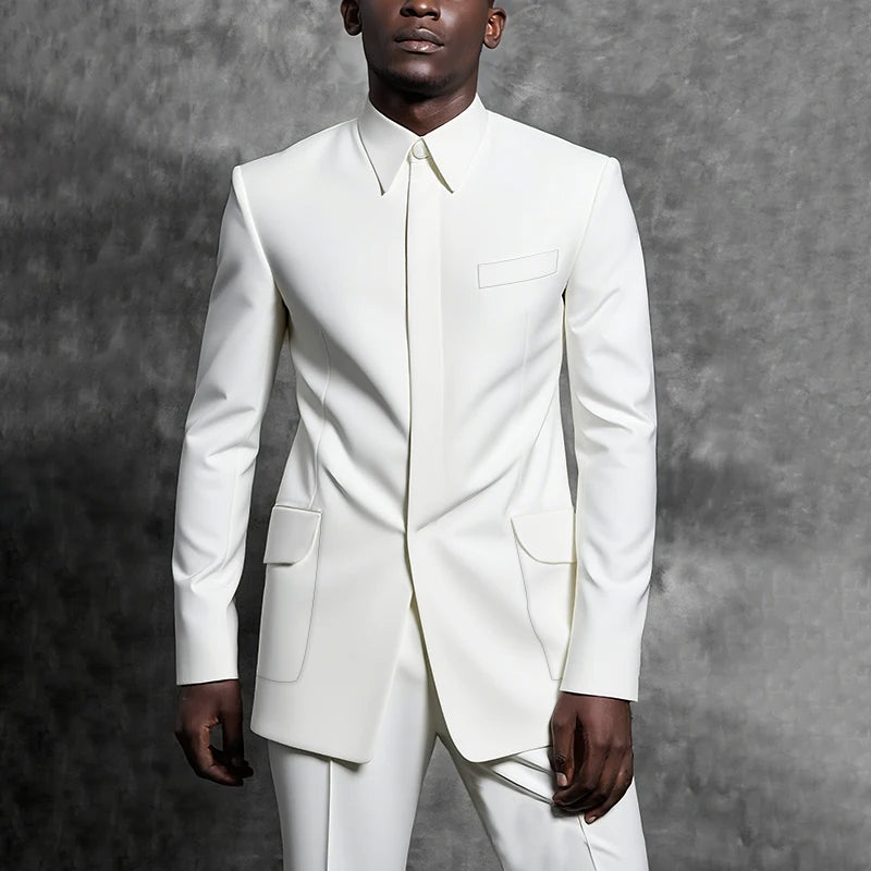 Costumes sur mesure col montant smoking Gentleman couleur unie tenue homme costume ensemble 2 pièces intelligent décontracté quotidien bureau mâle vêtements