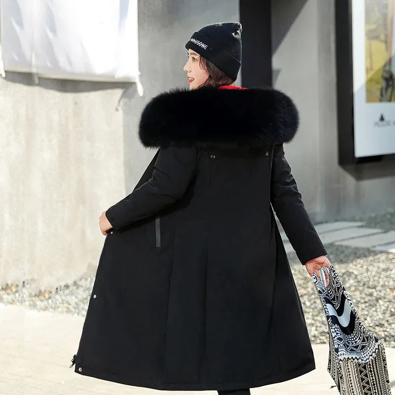 VWBQNZ veste en duvet de coton pour femme grand col de fourrure