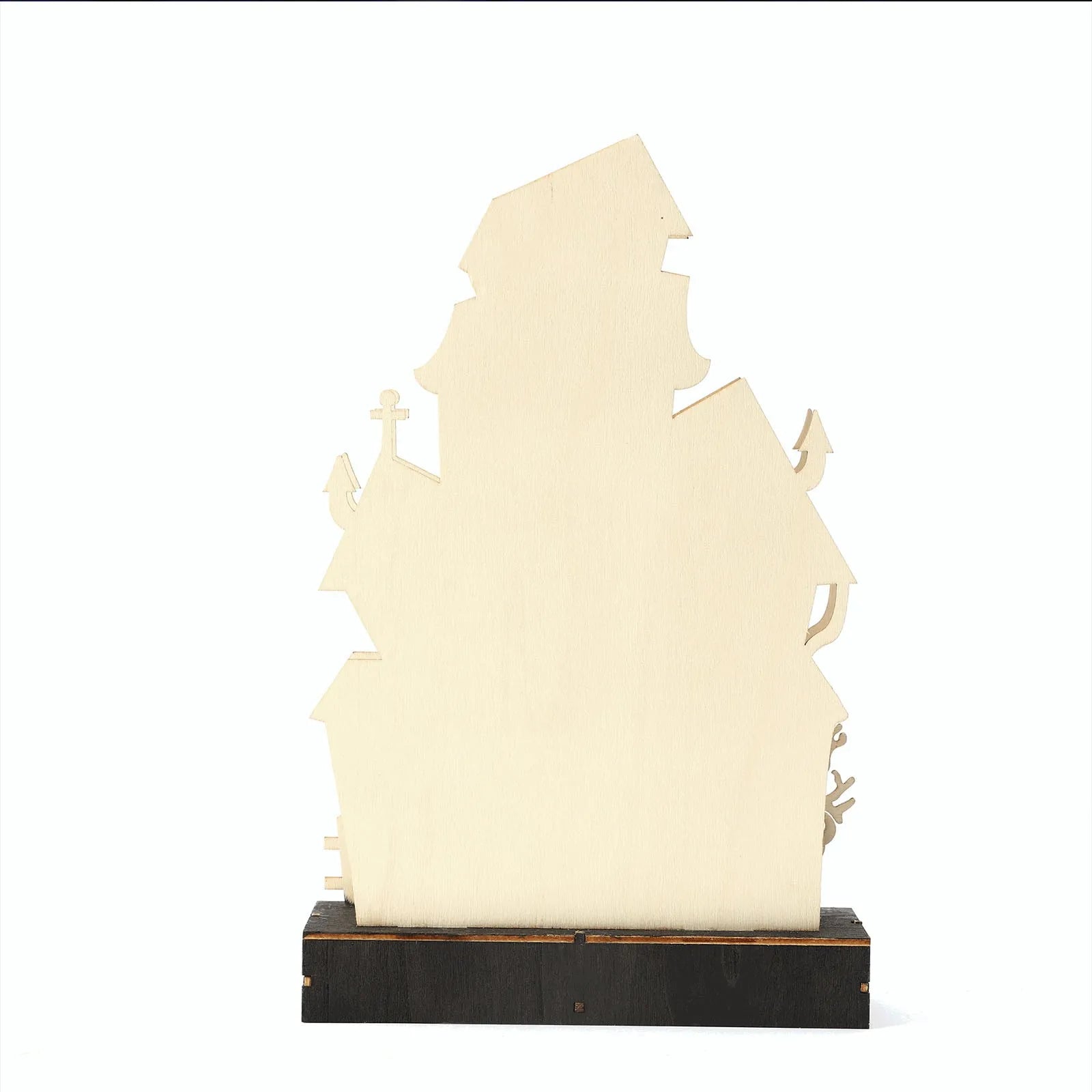 Éclairage de table en bois d'Halloween, ornements lumineux de maison hantée fantôme, décorations de table d'Halloween