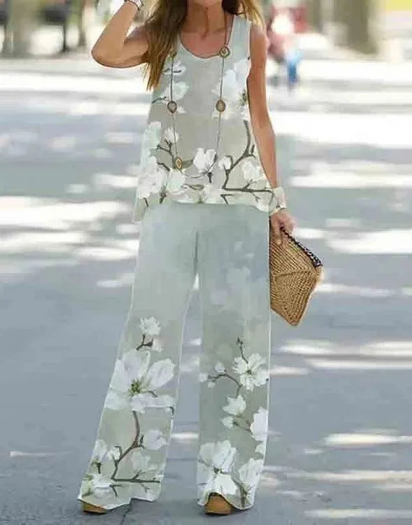 Ensemble de olympiques décontractés pour femmes, t-shirts en fibre précieuse, pantalons à jambes larges, pantalons longs complets, grands t-shirts, été
