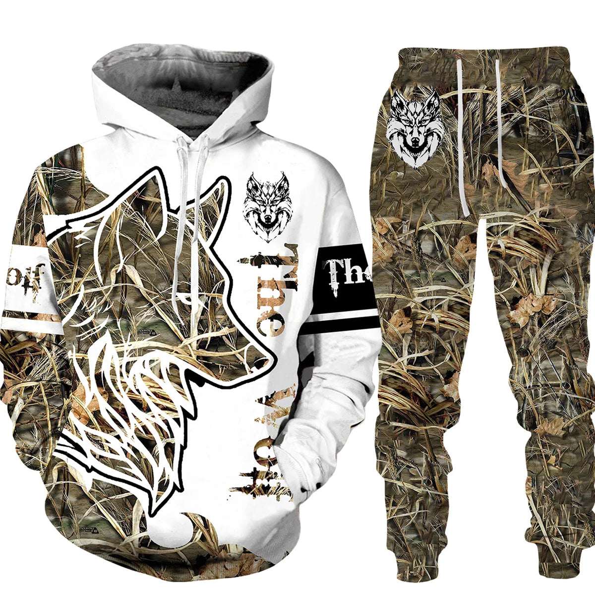 Ensemble de pantalons de survêtement et sweat à capuche College en 3D pour hommes, survêtement surdimensionné, streetwear imbibé, vêtements de sport, motif animal loup, hiver, automne