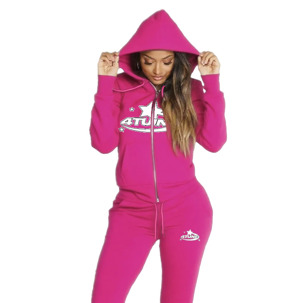 Ensemble pantalon à capuche et pantalon de survêtement pour femme, costume deux pièces avec fermeture éclair, Cardigan imprimé de haute qualité, vêtements de rue, survêtement d'hiver