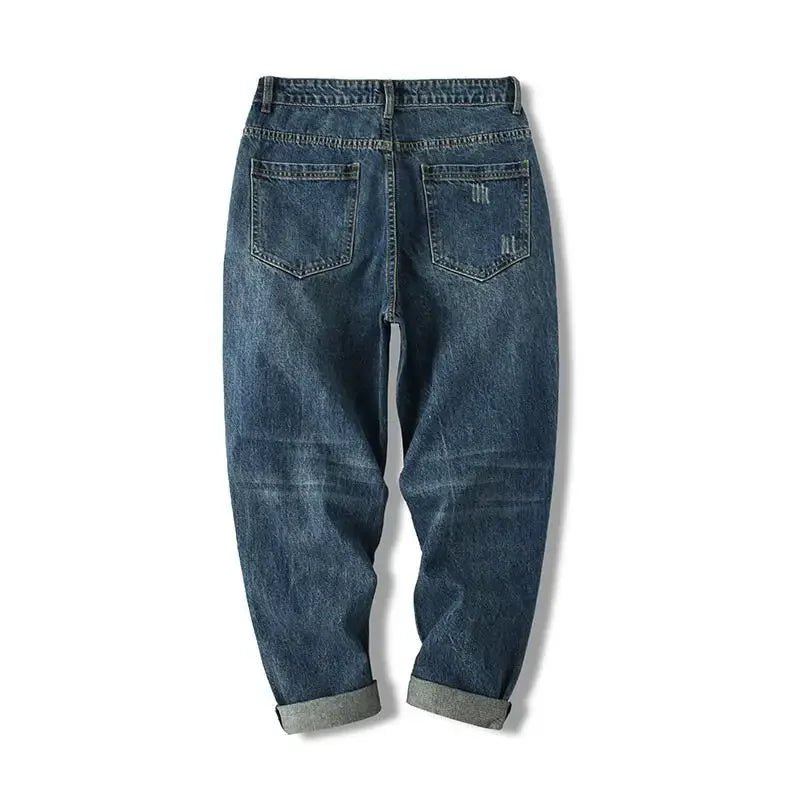 Fjwith Pockets Straight Cowboy Pants for Men, Cropped Jeans for Men, Korean Fashion, Washed, Harajuku, Summer, At Xs, Spring, Autumn