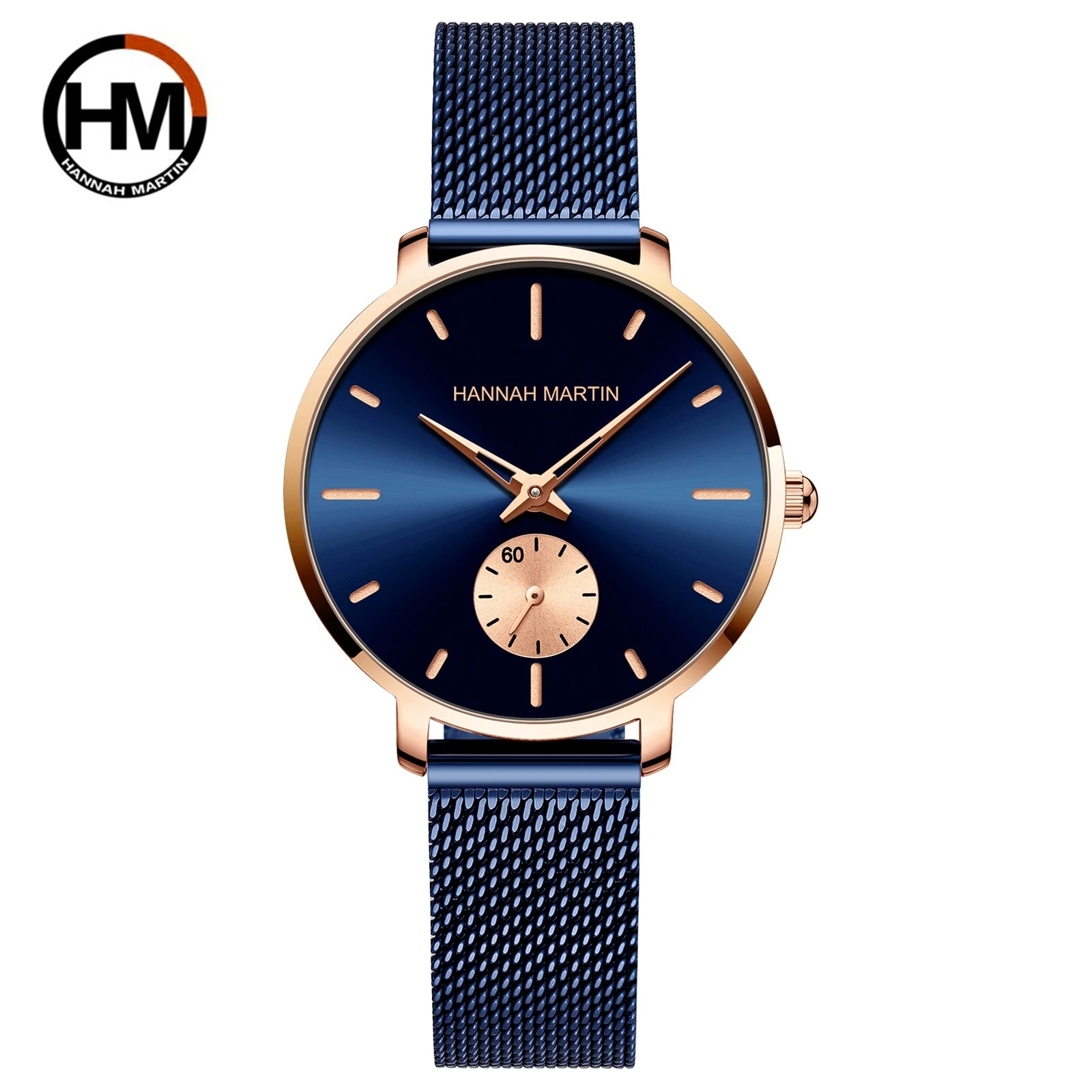 HANNAH MARTIN Top marque femmes montre 1335 synchronisation sous-cadran en acier inoxydable maille mouvement à Quartz or Rose 33mm