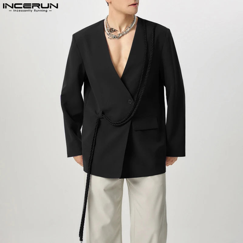 INCERUN hommes décontracté à manches longues Blazer 2025 beaux costumes de couleur unie élégant gland Streetwear mâle mince manteaux