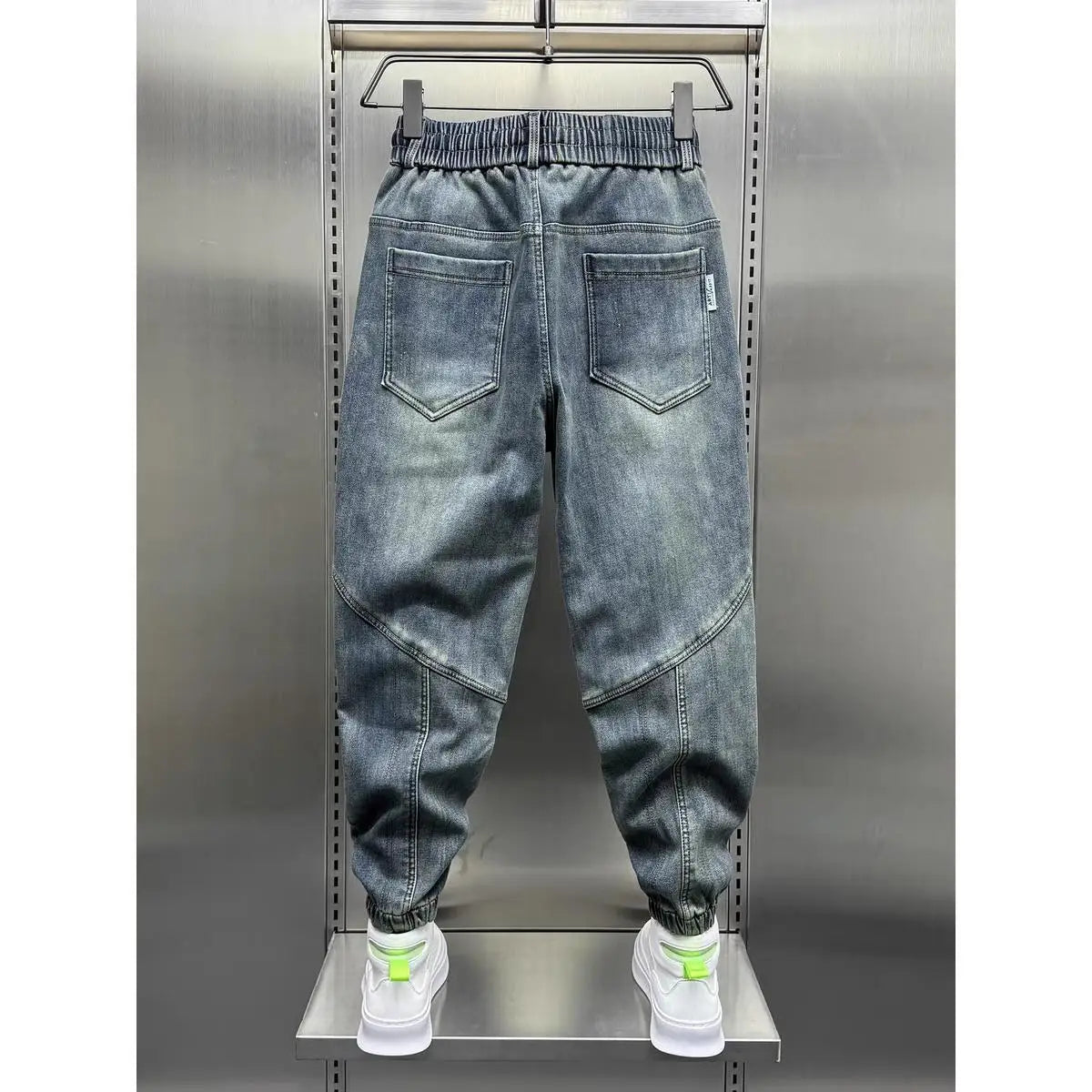 Jean Denim Bleu pour Homme, Pantalon Sarouel, Taille artificiel astique, Poignets, Vêtements de Luxe Décontractés, Mode Printemps-Automne, Nouveau, 2024