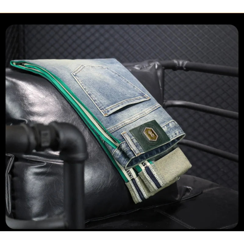 Jeans de luxe à rayures bleues pour hommes, haut de gamme, léger, polyvalent, coupe couvertes, skinny, déchiré, fjny, rue, printemps, 2024