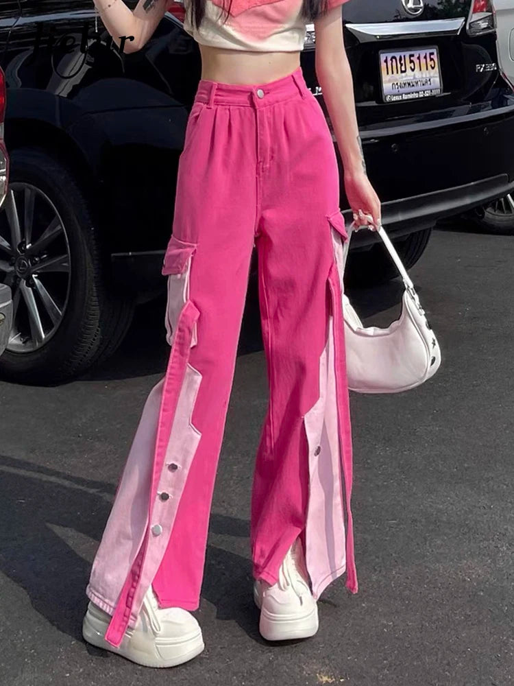 Jielur-Jean Droit Taille Haute pour Femme, Pantalon Cargo Sexy, Mode Décontractée, Streetwear Chic, Disponible en Rose, Collection Automne, Y2k