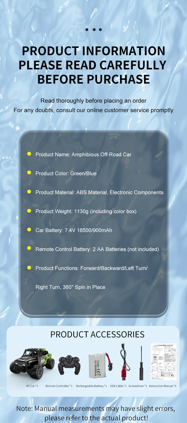 JJRC Q191 2.4G tout-terrain jeep voie navigable amphibie quatre roues motrices escalade véhicule tout-terrain jouet d'extérieur cadeau