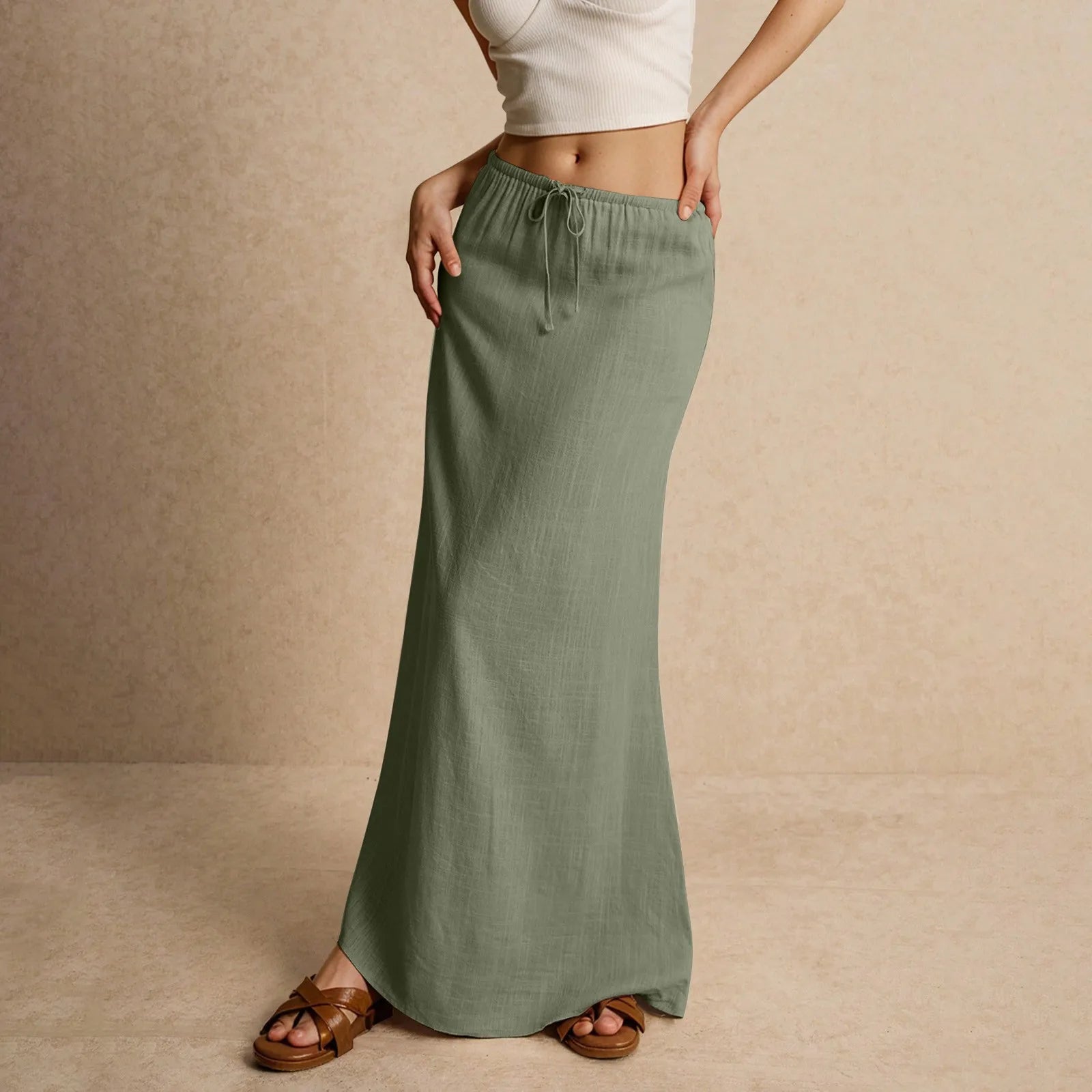 Jupe Maxi d'été pour femmes, cordon de serrage, taille basse, ligne A, jupes décontractées, taille haute élastique, moulante, longues jupes Maxi