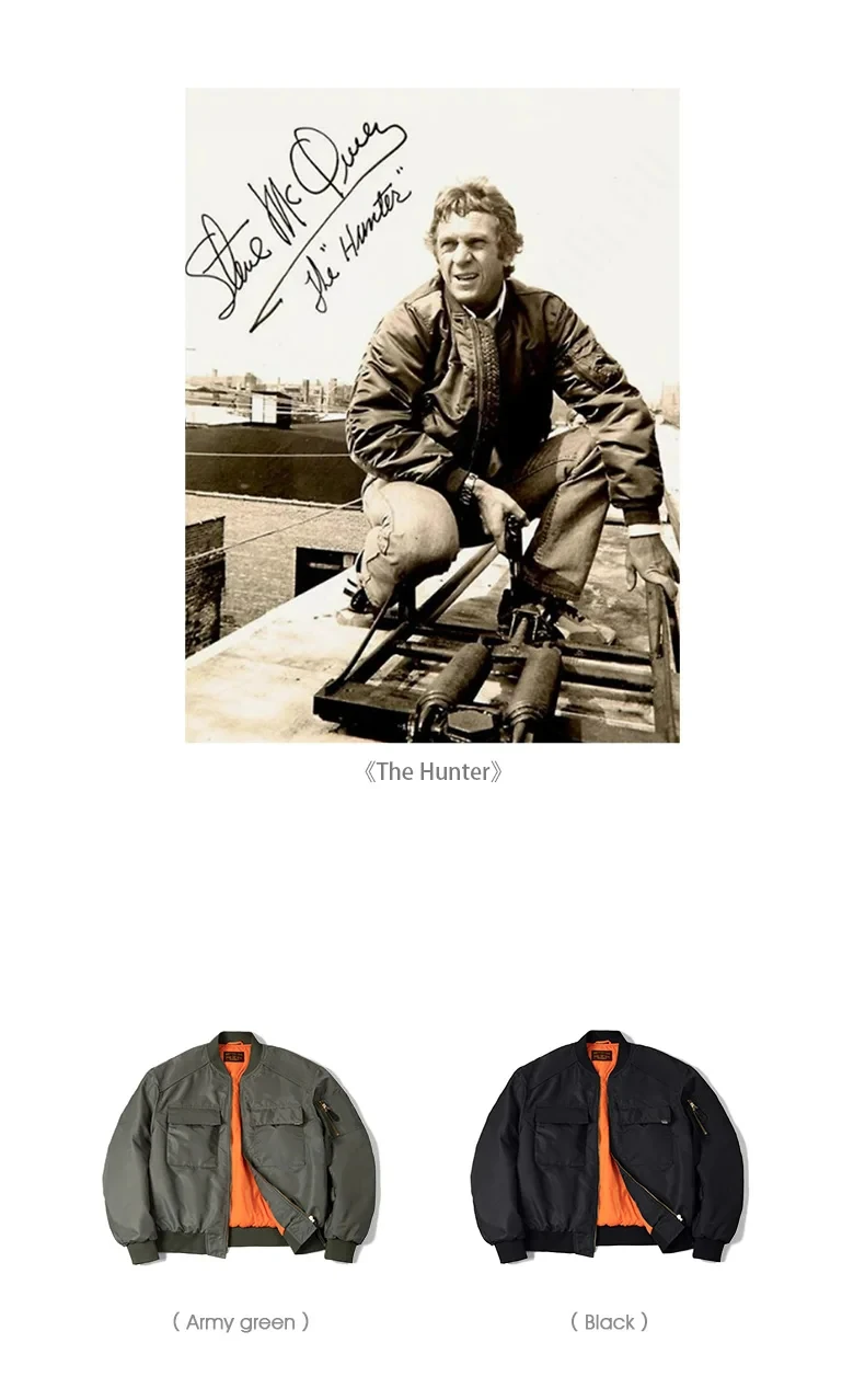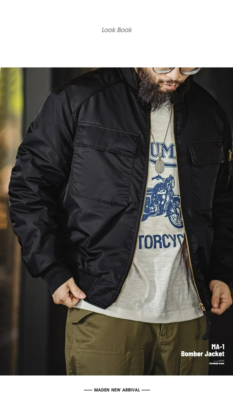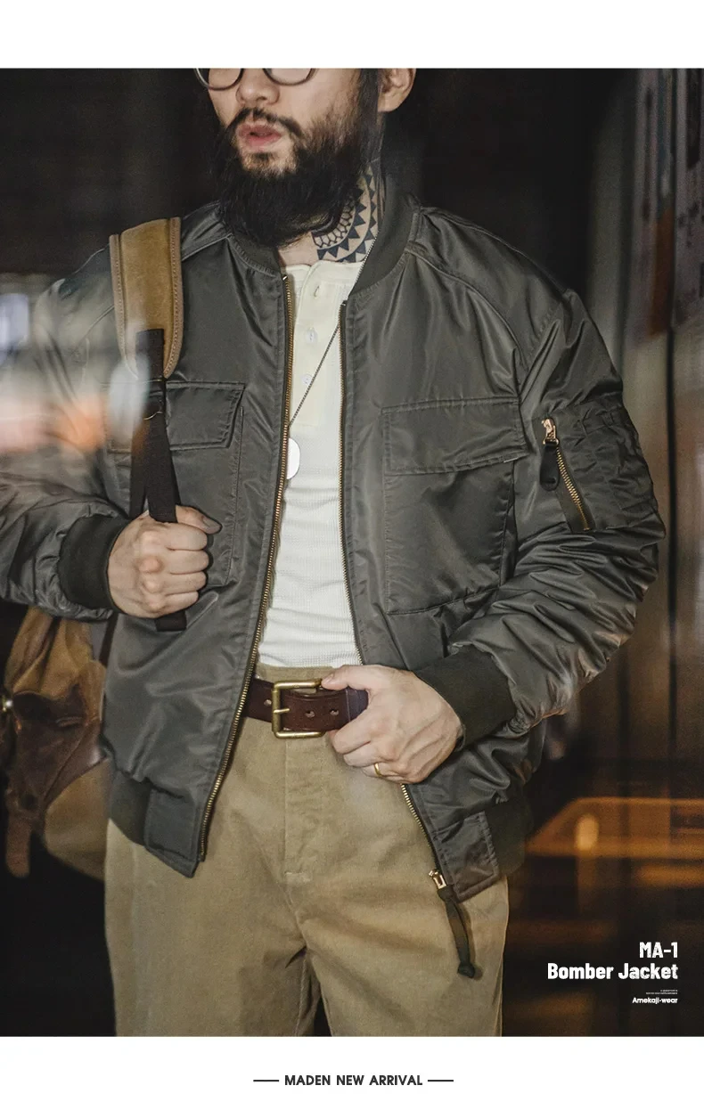 Maden Veste de bombardier MA1 pour hommes col de baseball doublure orange classique deux poches veste de baseball chaude pour l'automne et l'hive