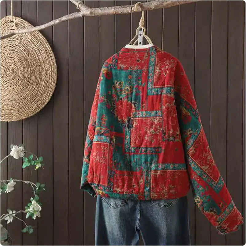 Manteau en coton imprimé de style rétro pour femme, manches chauve-souris