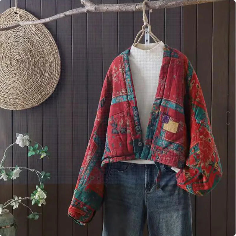 Apportez une touche vintage à votre garde-robe avec ce manteau en coton imprimé, parfait pour celles qui aiment allier style et confort. Ses manches chauve-souris créent une silhouette fluide et originale, vous permettant de jouer facilement avec vos looks au quotidien. Léger et agréable à porter, ce manteau apporte une note fantaisiste à toutes vos tenues, tout en vous assurant une grande liberté de mouvement. Que ce soit pour une sortie entre amies ou une journée en ville, il deviendra vite votre allié charme et décontraction. Osez le rétro revisité avec ce manteau plein de personnalité qui ne passera pas inaperçu
