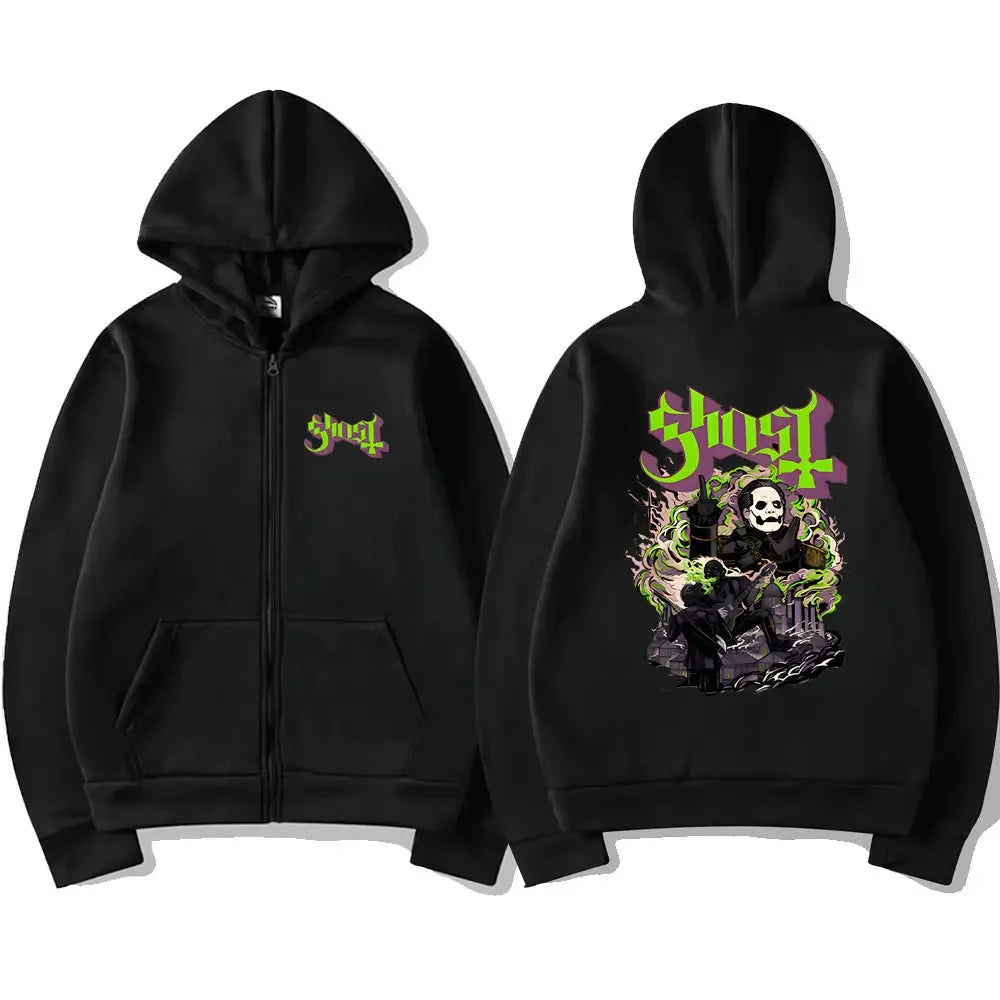 Mesurost Band Zipper Hoodie pour hommes, Hip Hop Respzed Fashion, Cartoon Anime Graphic Print, Zip Up Hoodies, Rock Gothic, PVD