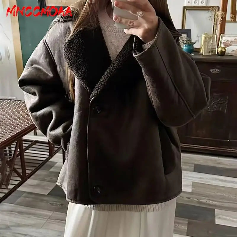 MNCCMOAA-Veste Vintage à Manches sulfpour Femme, Manteau Chaud, Décontracté, avec Poches Solides, Collection Hiver 2023