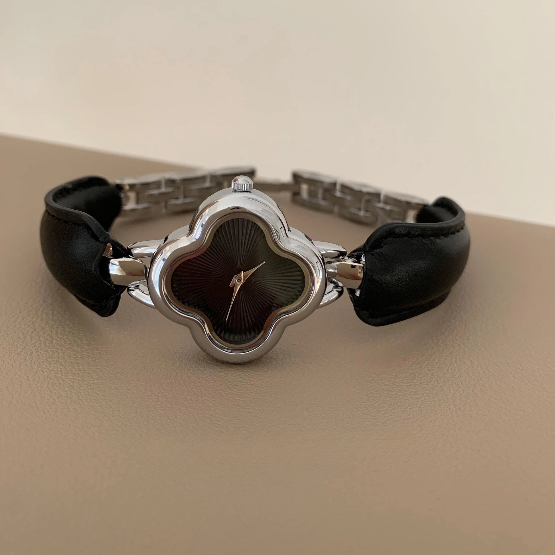 montre pour femme vintage avec trèfle à quatre feuilles bracelet design en cuir rétro montre à quartz