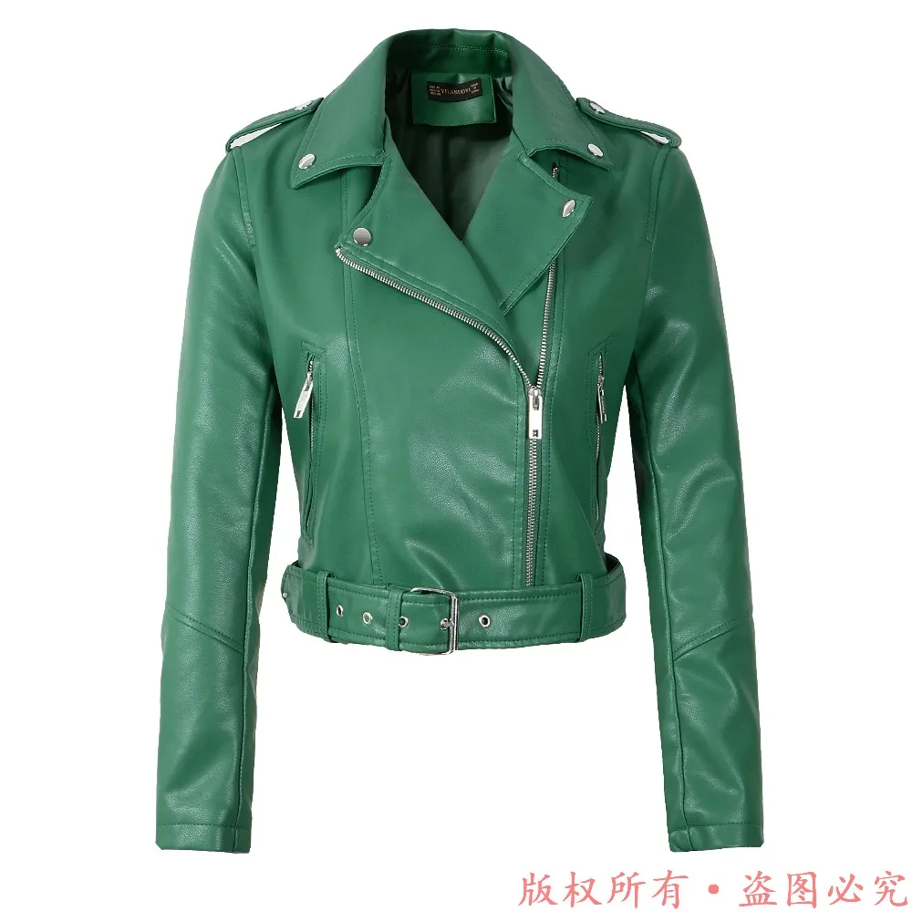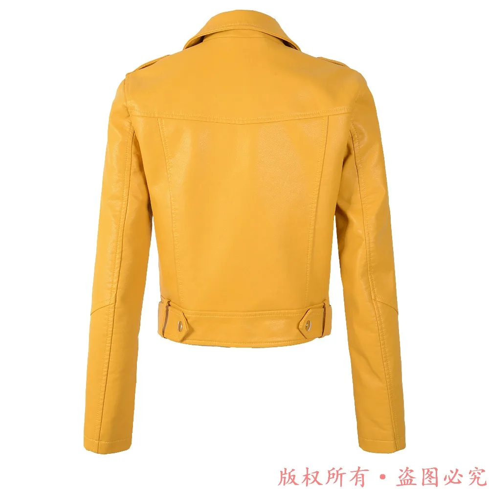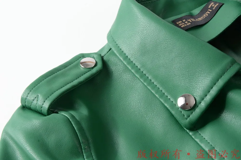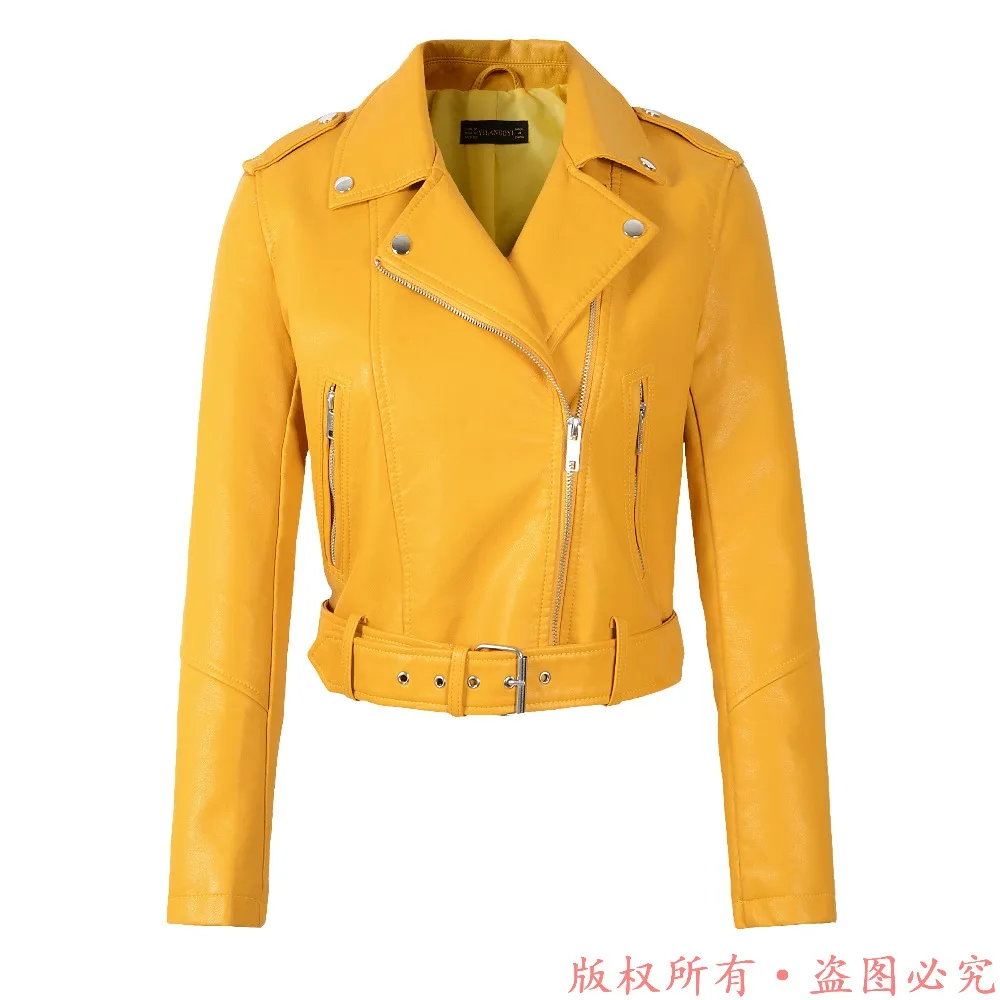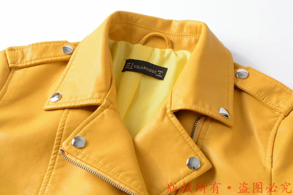 Nouveauté marque hiver automne vert moto vestes en cuir jaune veste en cuir femmes manteau en cuir mince PU veste en cuir