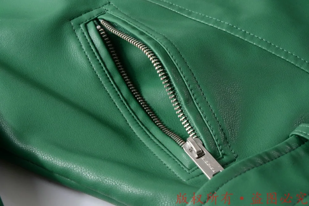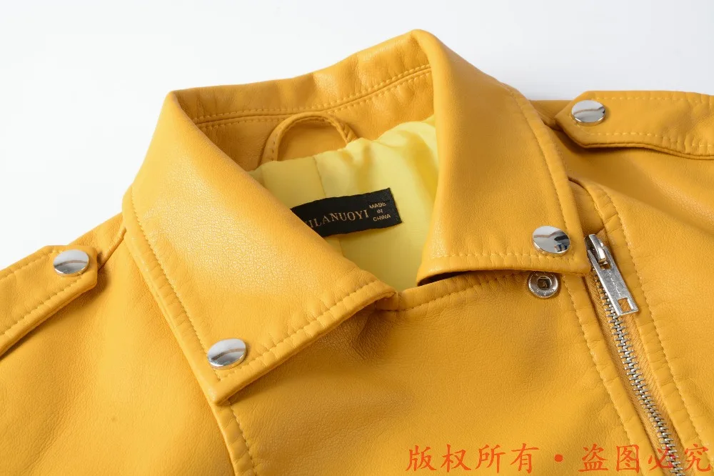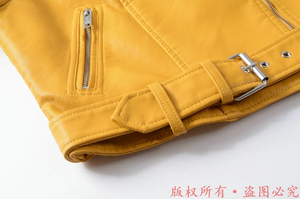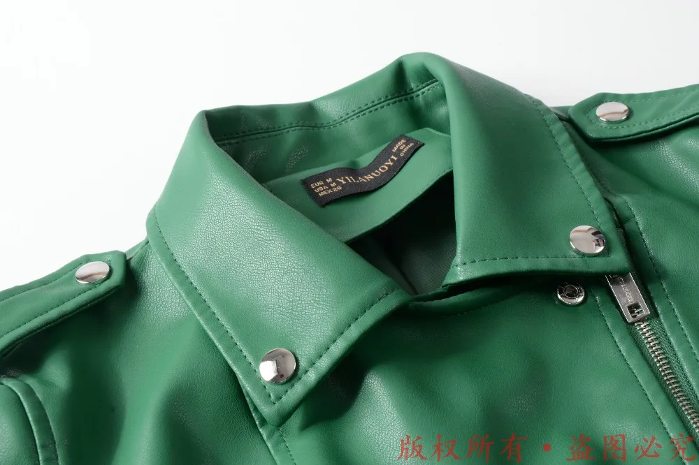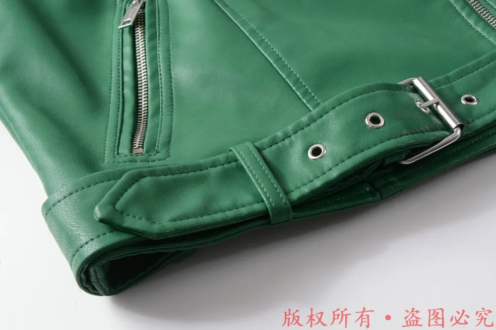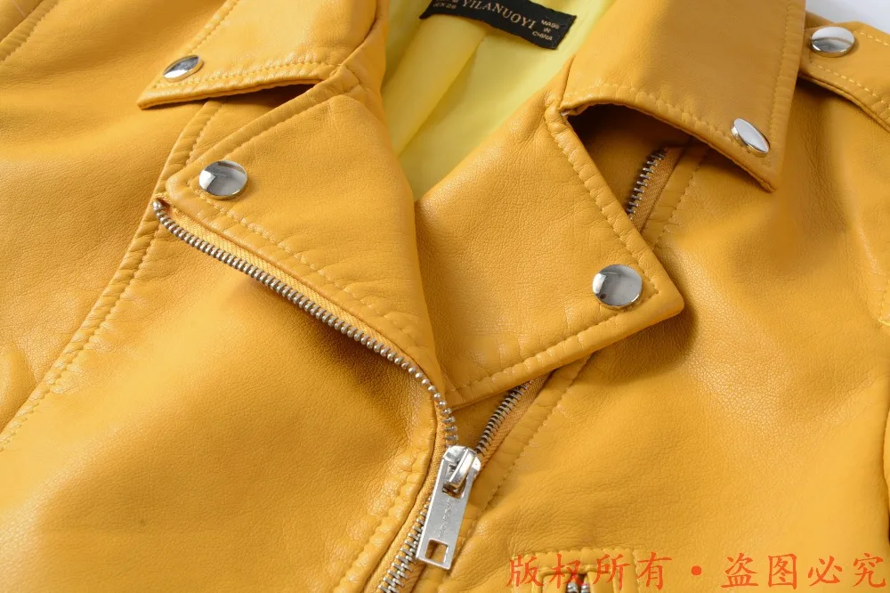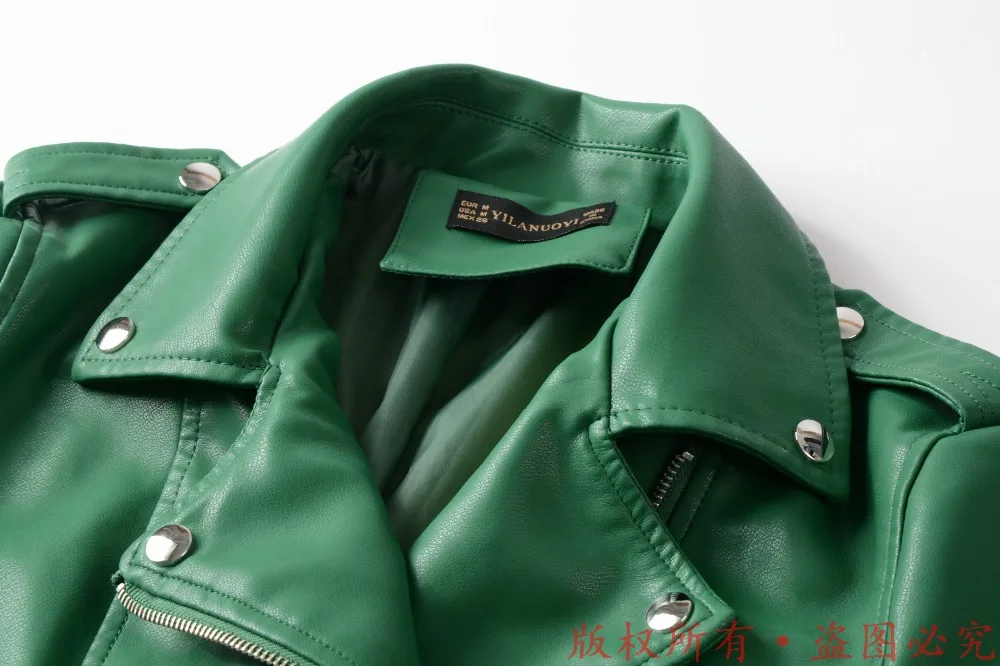 Nouveauté marque hiver automne vert moto vestes en cuir jaune veste en cuir femmes manteau en cuir mince PU veste en cuir