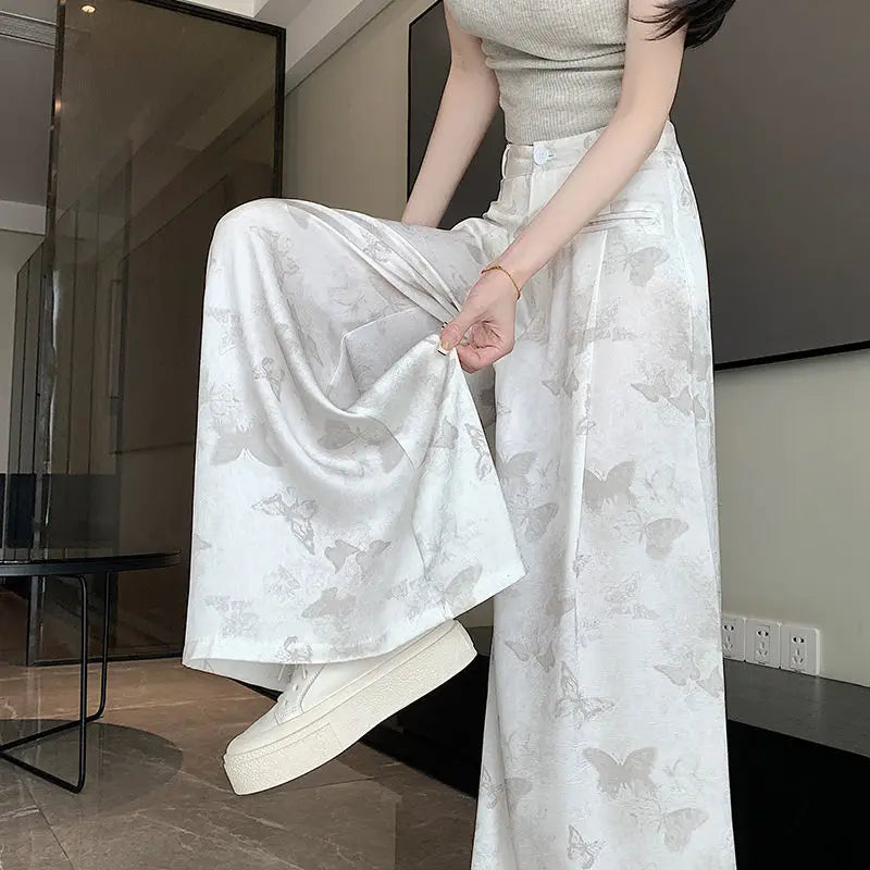 Pantalon drapé en Satin papillon noir pour femme, ample et à la mode, jambes larges, taille haute, Slim, décontracté, printemps et été