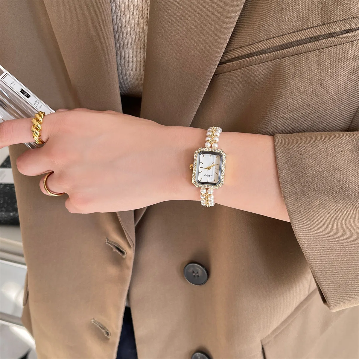 Perle de luxe cloutée Bracelet femmes montre dames cadeau Bracelet montres mode Quartz