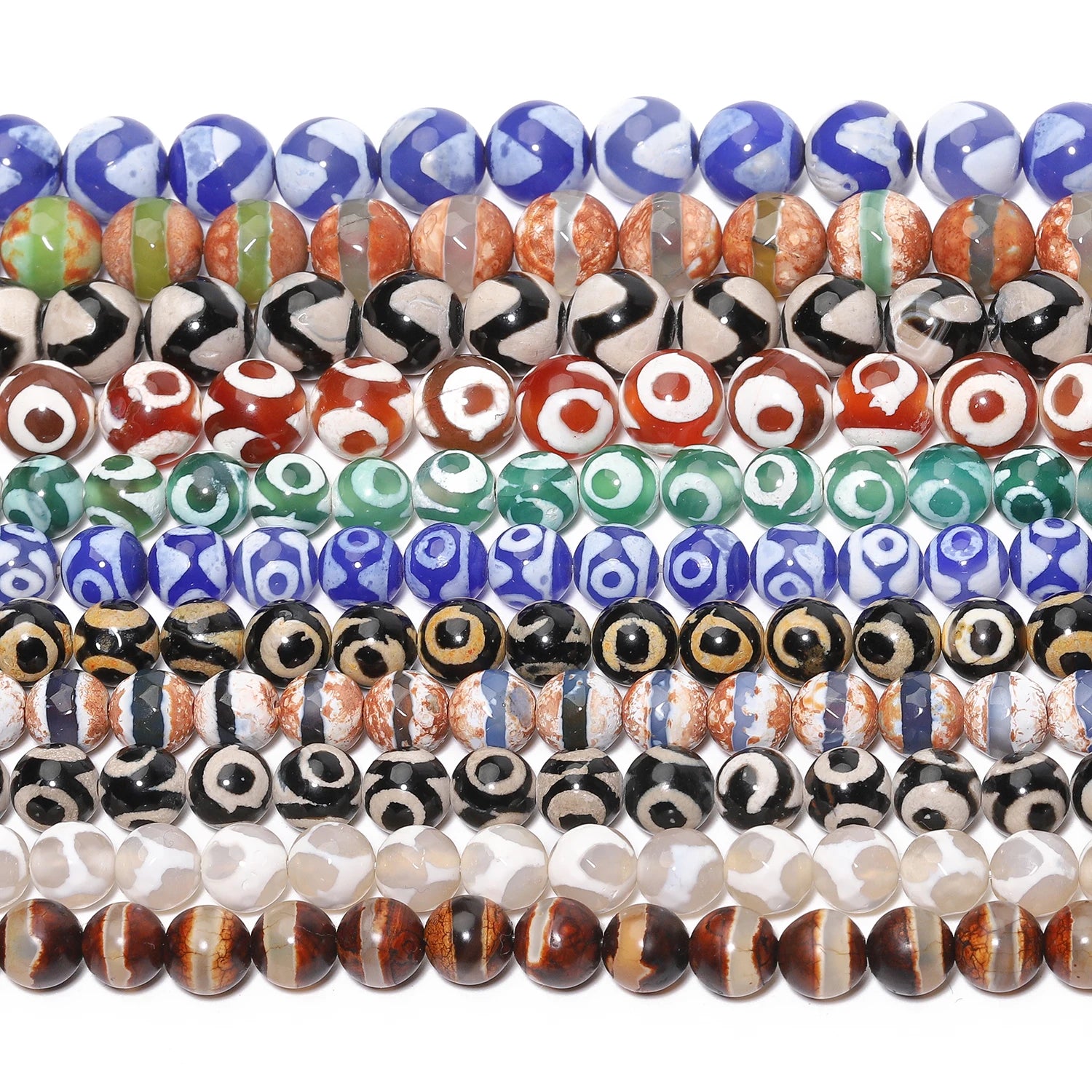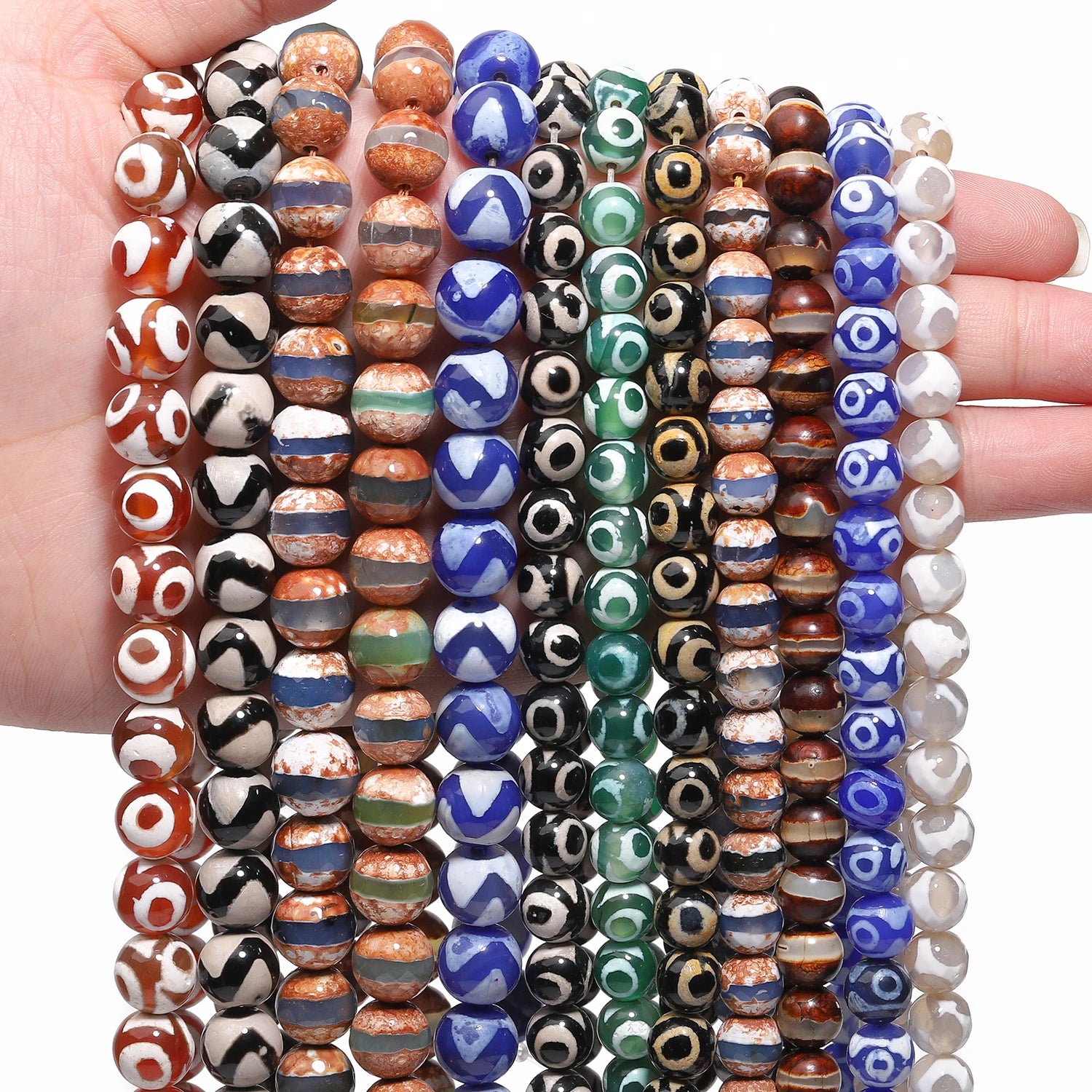 Perles d'agate Dzi naturelles de 6/8/10mm, prière tibétaine, perles rondes anciennes mystiques pour la fabrication de bijoux, accessoires de Bracelet Vintage à faire soi-même