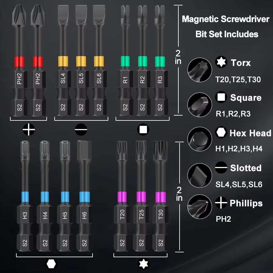 Acier allié S2 de qualité supérieure 🔩: Fabriqués à partir d'acier allié S2 robuste avec une dureté de HRC60, ces embouts sont conçus pour résister à une utilisation intensive.Compatible avec les perceuses électriques (avec régulation de vitesse), les tournevis électriques et les tournevis manuels. Remarque : ne pas utiliser avec des outils pneumatiques, des perceuses pneumatiques ou des perceuses électriques sans régulation de vitesse. pour préserver la longévité.