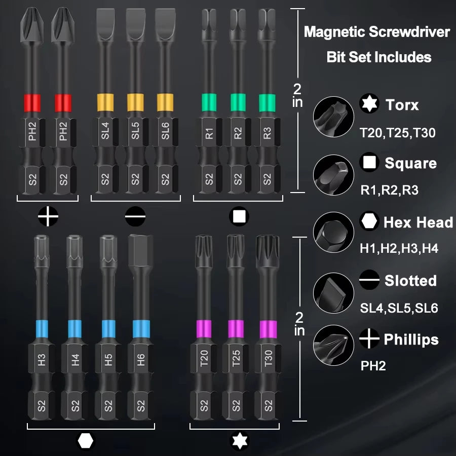 Rafford15PCS lot magnétique tête Impact tournevis électrique jeu d'embouts étui magnétique 5 Types S2 tête embout anti-dérapant étanche embouts