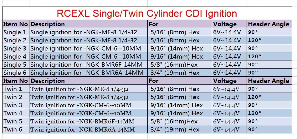NGK-ME-8 CDI à allumage simple/double Rcexl 1/4-32 90/ 120 degrés pour moteur essence RC avion