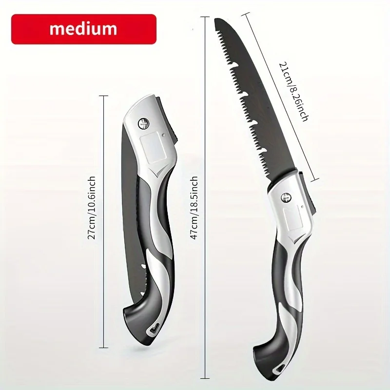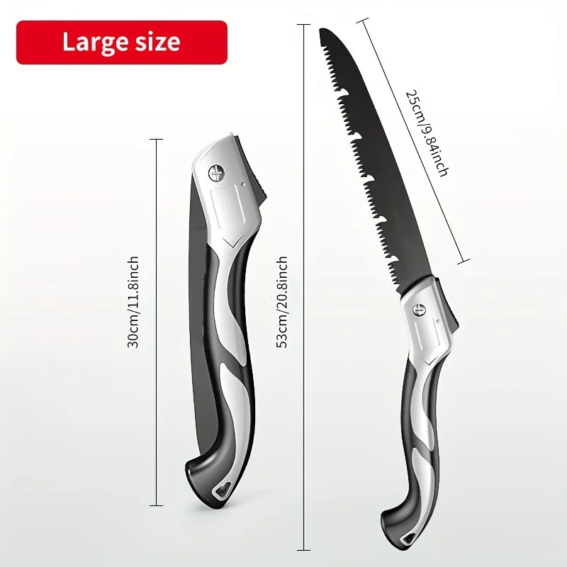 - SÈCHE PLIANTE MULTI-USAGE - Conception pliante compacte, adaptée au camp, à la survie, au sac à dos, aux arbres, au jardinage, à l'aménagement paysager d'une excellente scie pliante. Conception pliante et système de verrouillage sûr, cette scie convient très bien aux débutants et aux utilisateurs professionnels, très sûre!