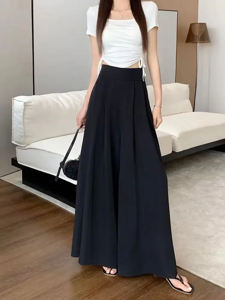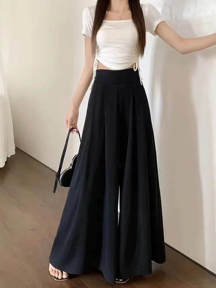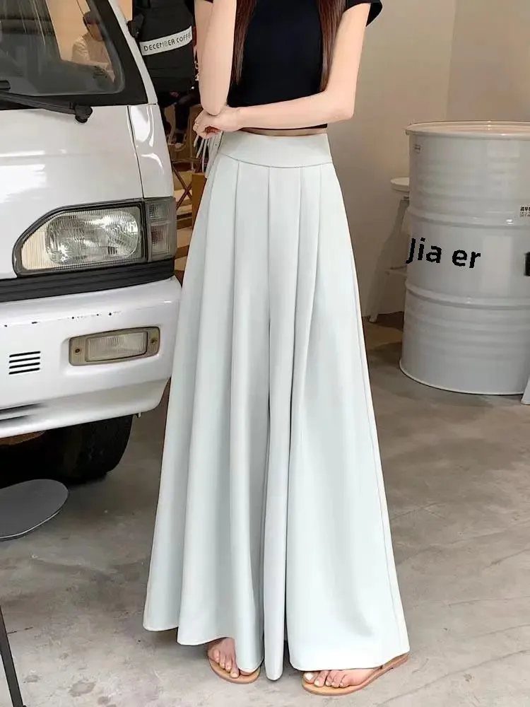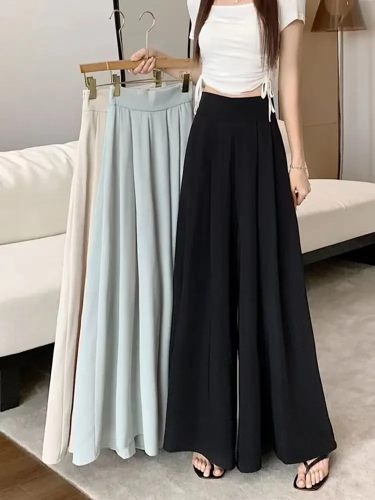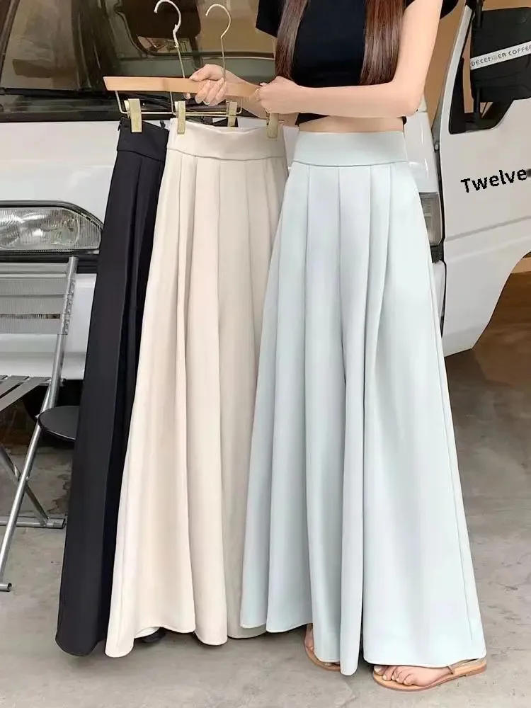 Taille haute jambe large pantalon jupe femmes printemps été mince plissé costume pantalon drapé minceur Style décontracté à la mode