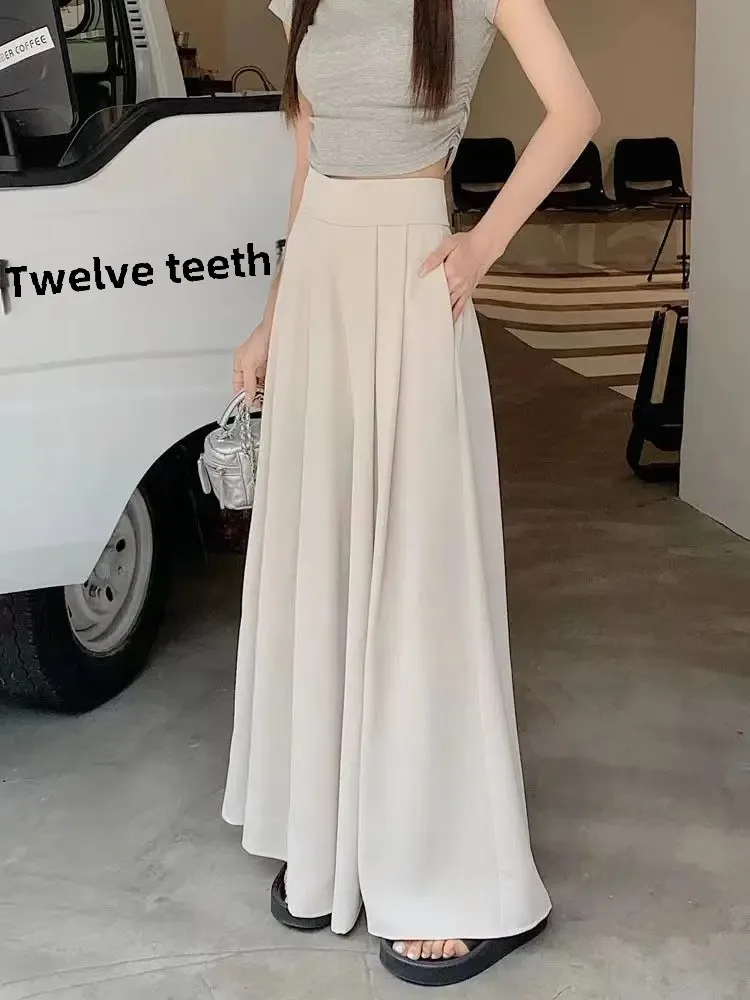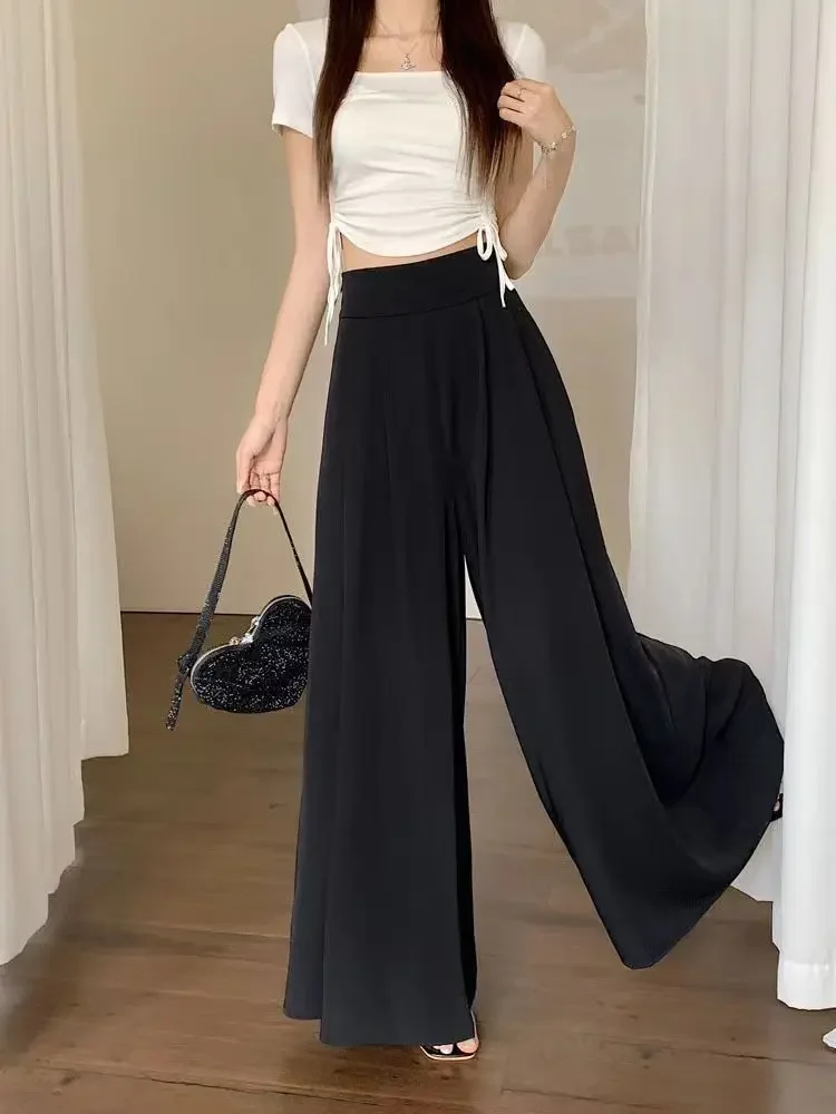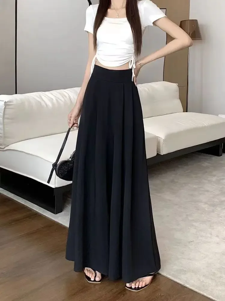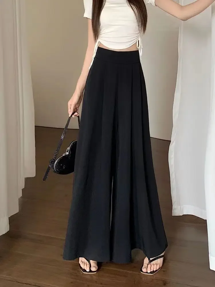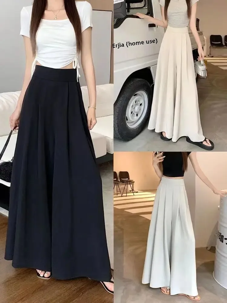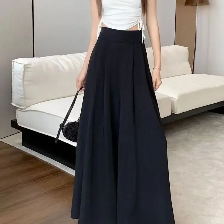 Taille haute jambe large pantalon jupe femmes printemps été mince plissé costume pantalon drapé minceur Style décontracté à la mode