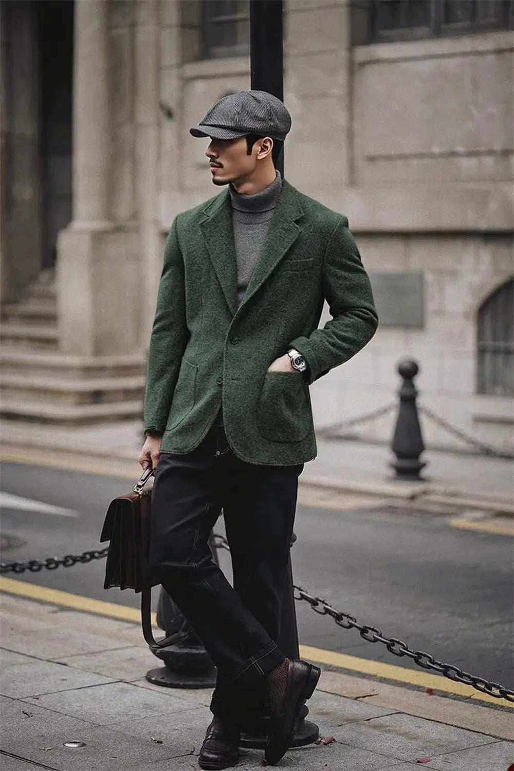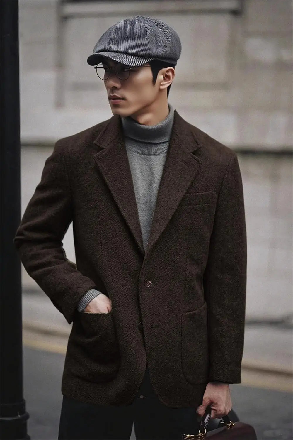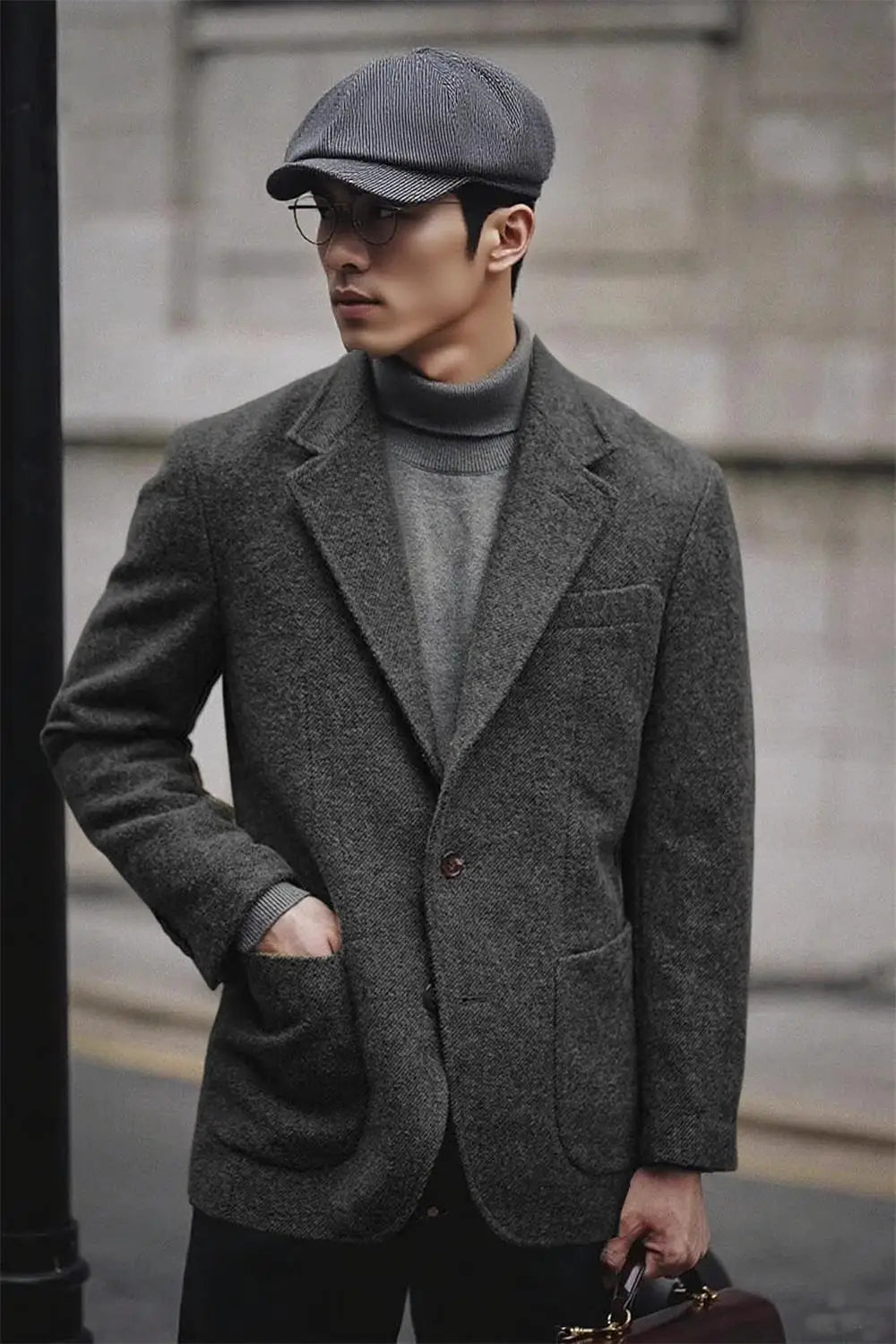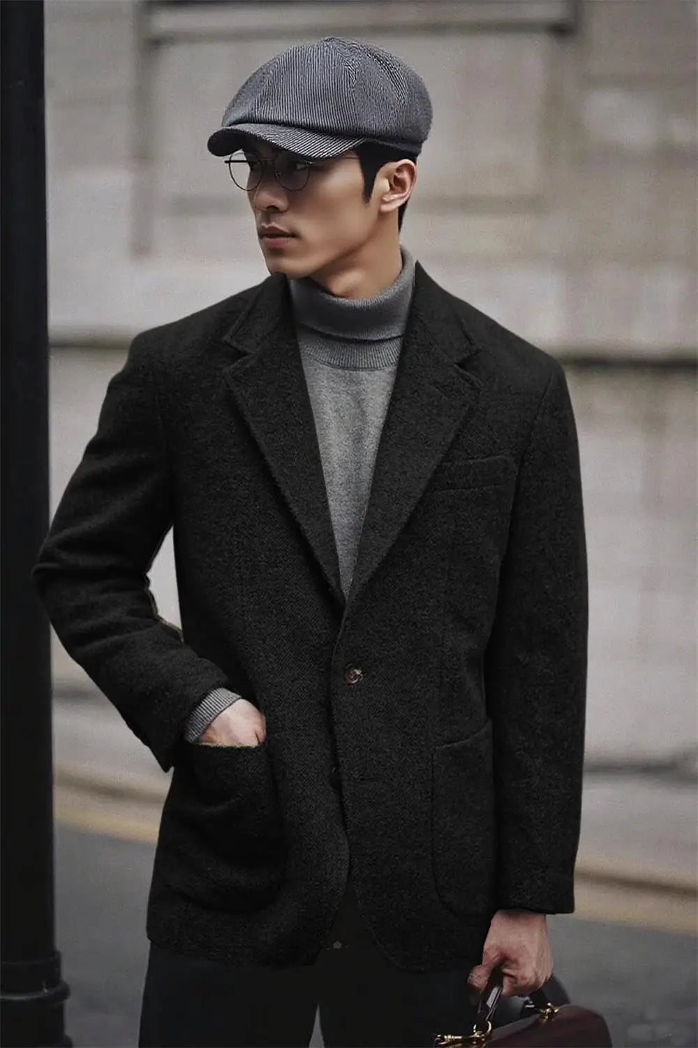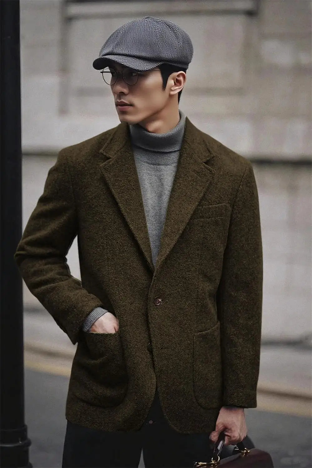 Tissu en laine hommes sergé costume veste automne homme Blazers homme grande taille costume personnalisé manteau style italien bureau d'affaires costume veste