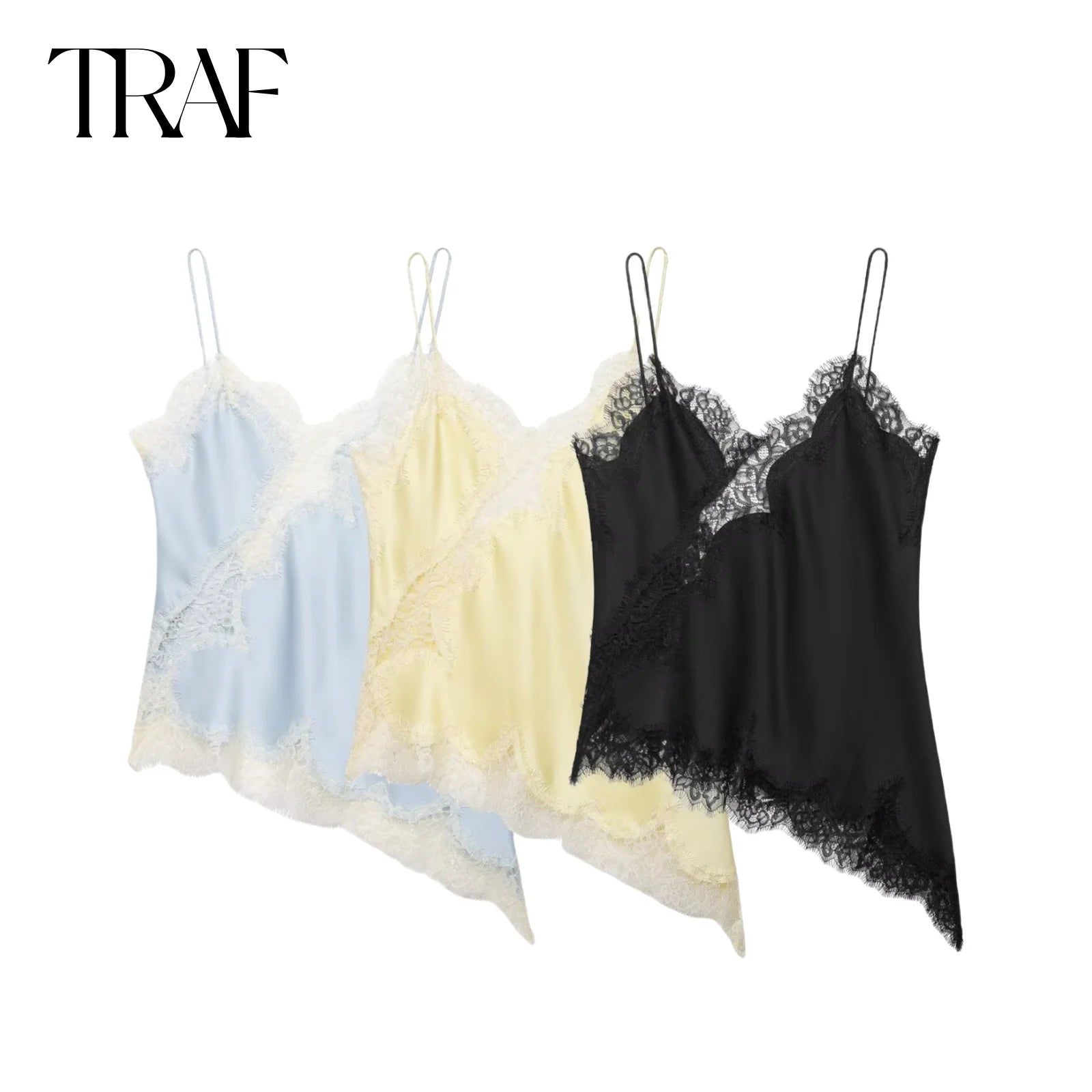 TRAF dentelle sous-vêtements décoratifs haut été nouveau 2025 femmes vêtements asymétrique col en v sexy débardeur chic France dames hauts