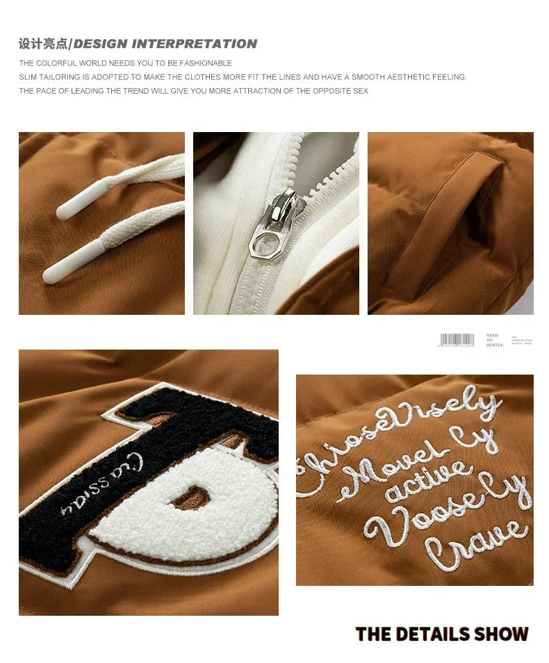 Veste d'hiver pour hommes, faux manteau rembourré en coton épais, Harajuku japonais, 2 pièces, Parka de Baseball chaude pour étudiants à la mode, 2024