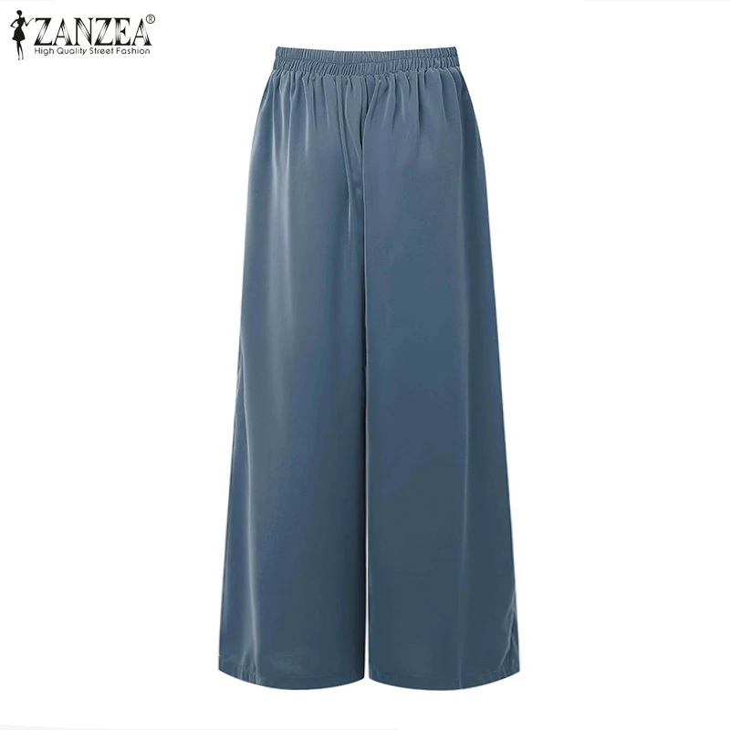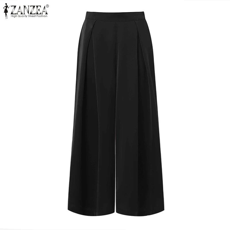 ZANZEA 2025 Pantalon d'été femmes taille haute Baggy Pantalon élégant travail OL Pantalon solide Long Palazzo élégant ample jambe large Pantalon
