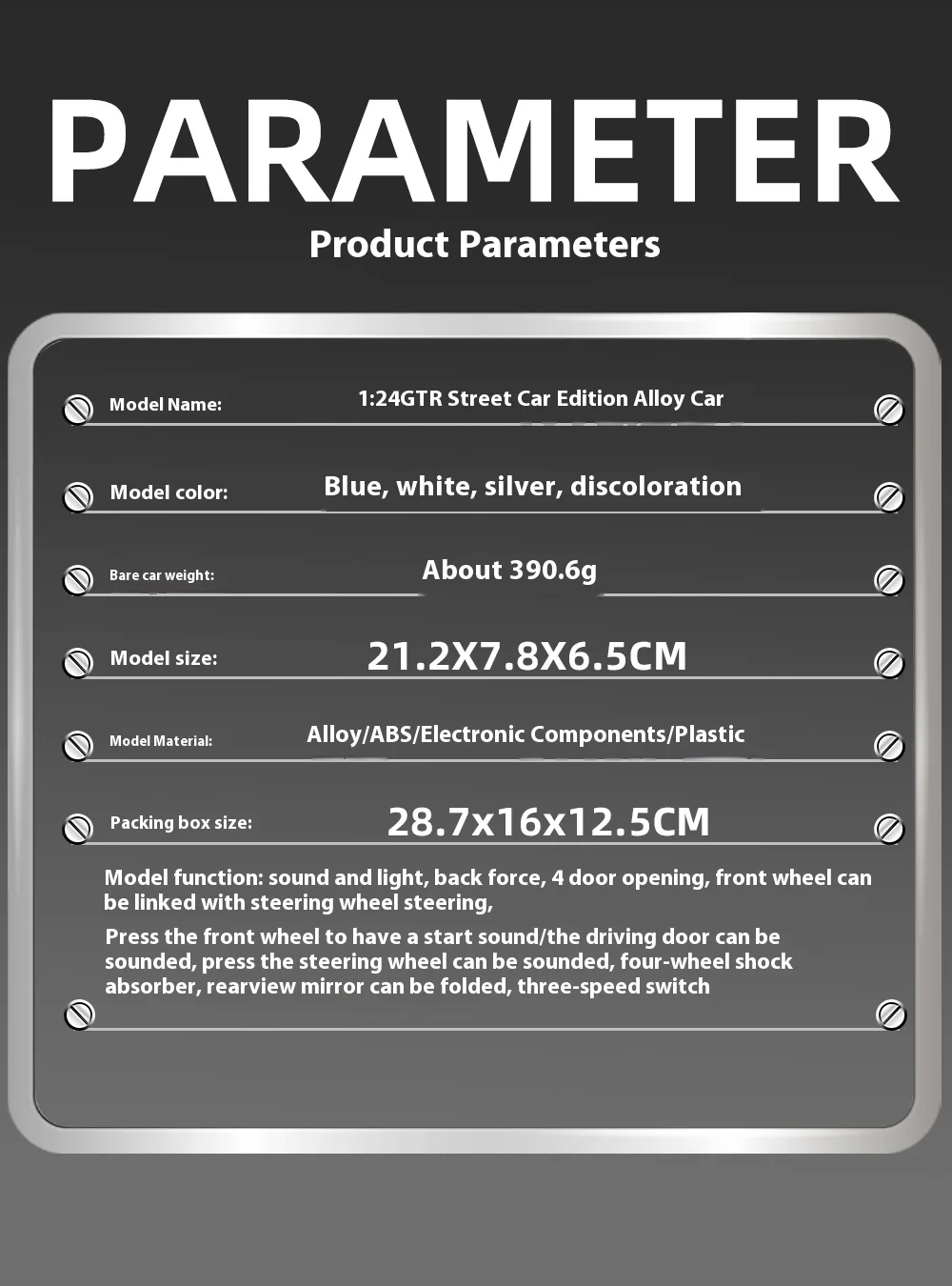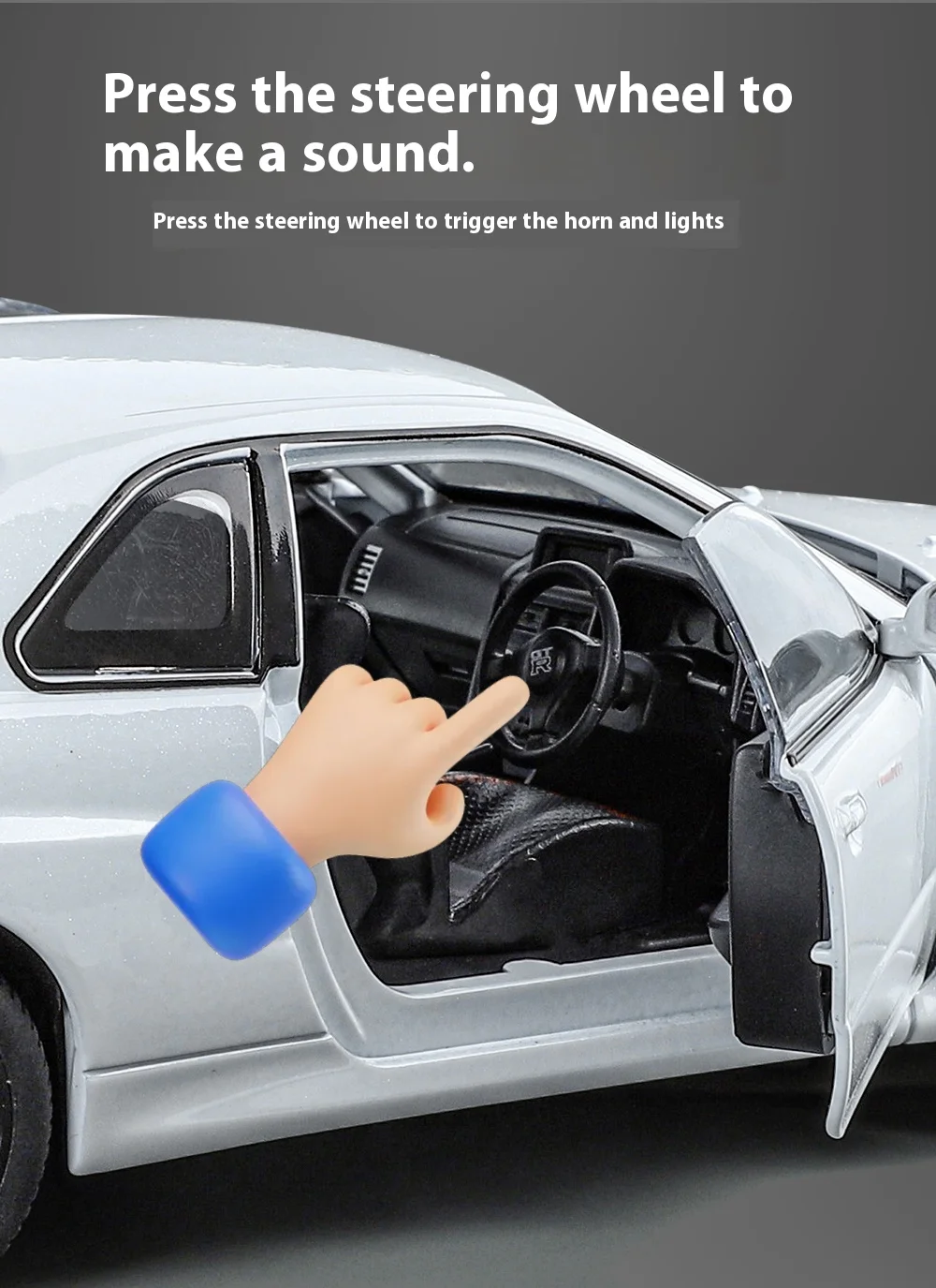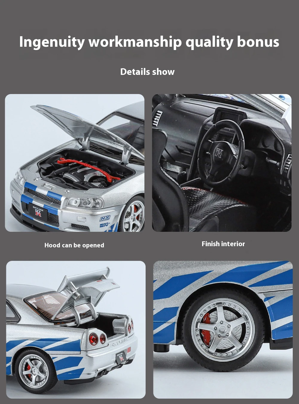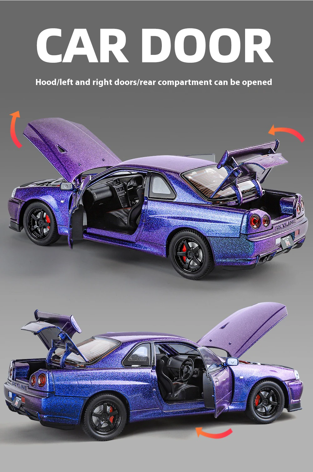 1:24 GTR R34 Skylin Diecast Modèle En Métal De Voiture Son Et Lumière Tirer Supercar Sport Racing Collection Loisirs Vacances Cadeau Garçon