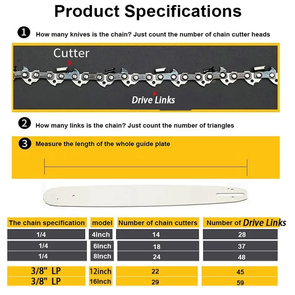 Nom du produit : chaîne de tronçonneuse 4/6/8 pouces.