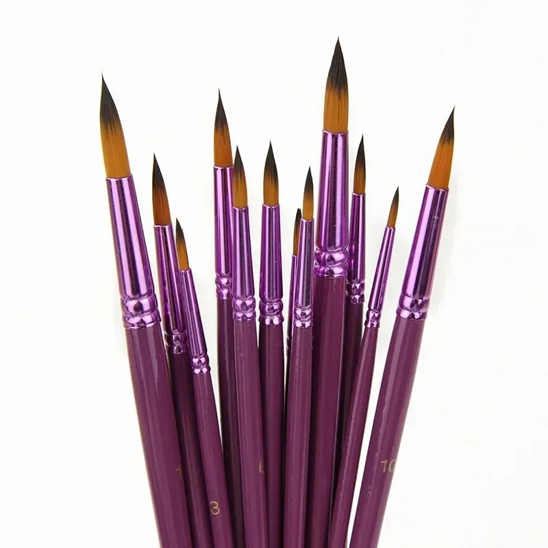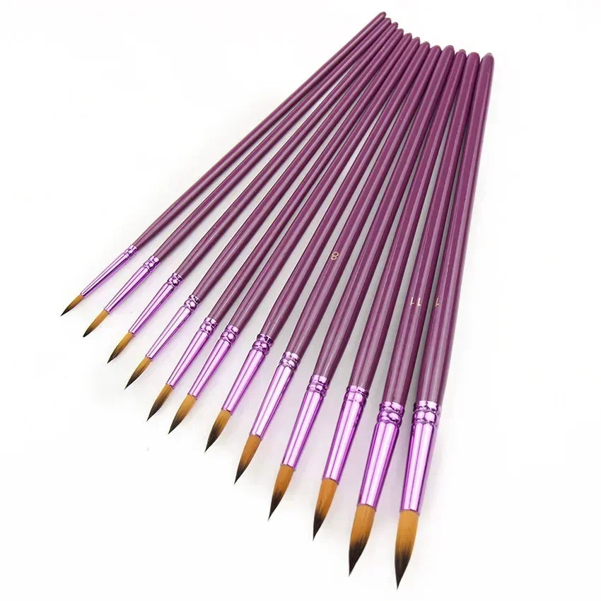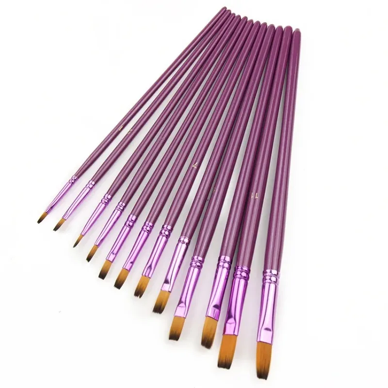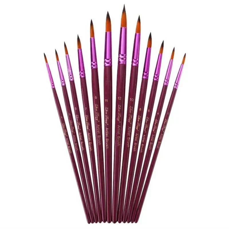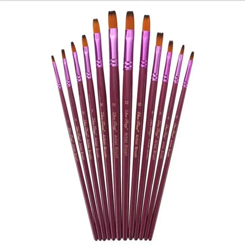 12 pièces/lot pinceau à cheveux en Nylon différentes tailles artiste pinceaux de peinture à l'huile Fine aquarelle Gouache école dessin fournitures d'art