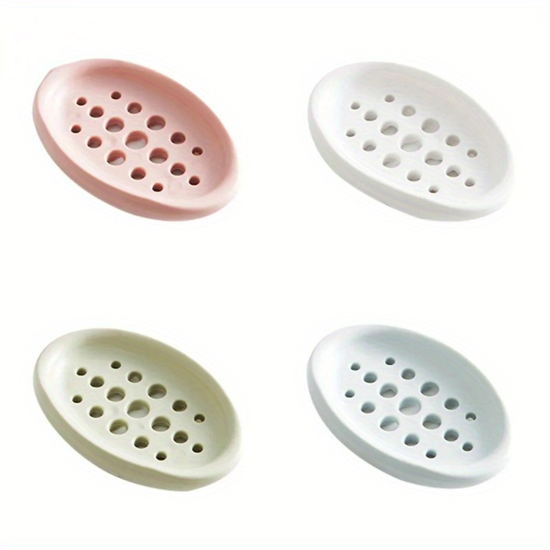 1pc Modern Silicone Soap Dish with Self-Draining System, Non-Slip Base & Rounded Edges - Pastel Colors (Pink, Mint Green, Beige, White, Light Blue) - Durable Bathroom Organizer, Space-Saving Soap Tray for Shower or Bathtub, E