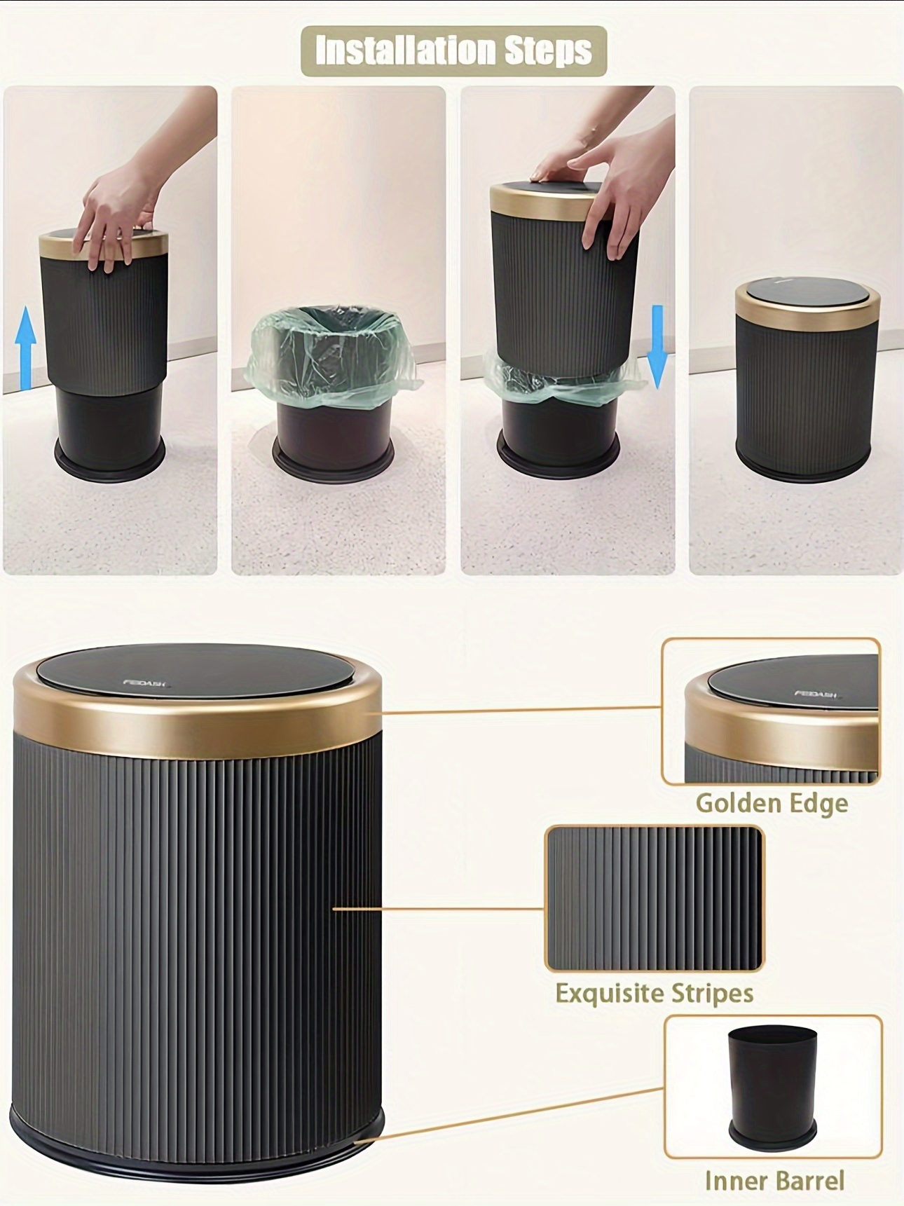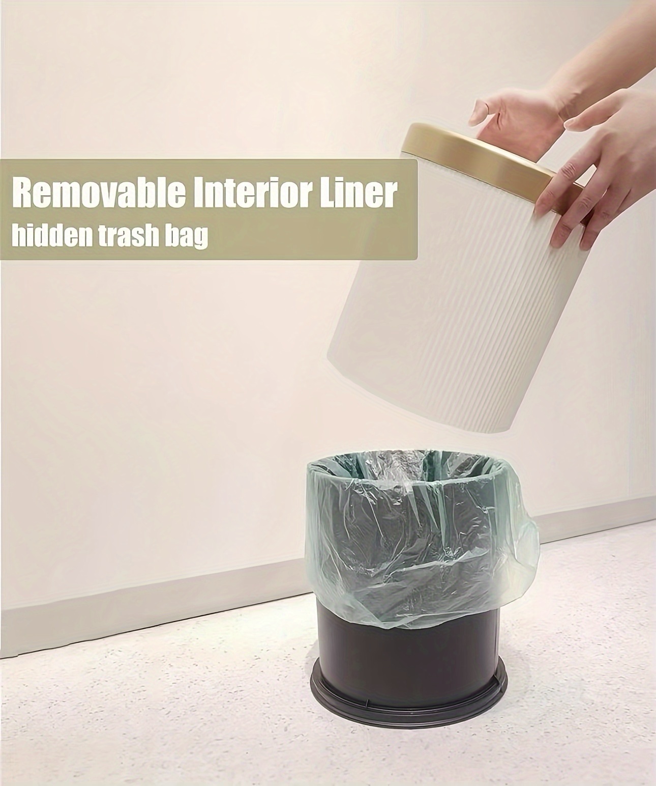 1pc Press-Type Luxury Kitchen Trash Can with Odor-Sealing Lid, Cylindrical Plastic Bin for Home, Living Room, Bathroom - Double-Layer Waste Basket, Large Capacity Garbage Can