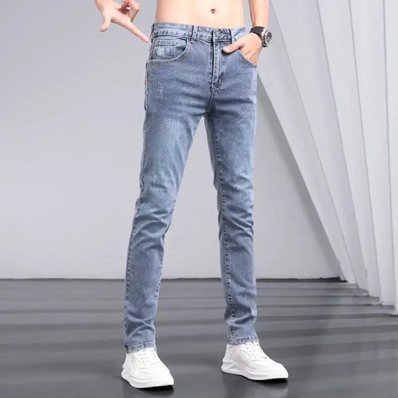 2025 été jean de couleur claire hommes à la mode marque jeunesse Slim-fit élastique Pantalon coréen pantalons longs Streetwear hommes Pantalon Homme