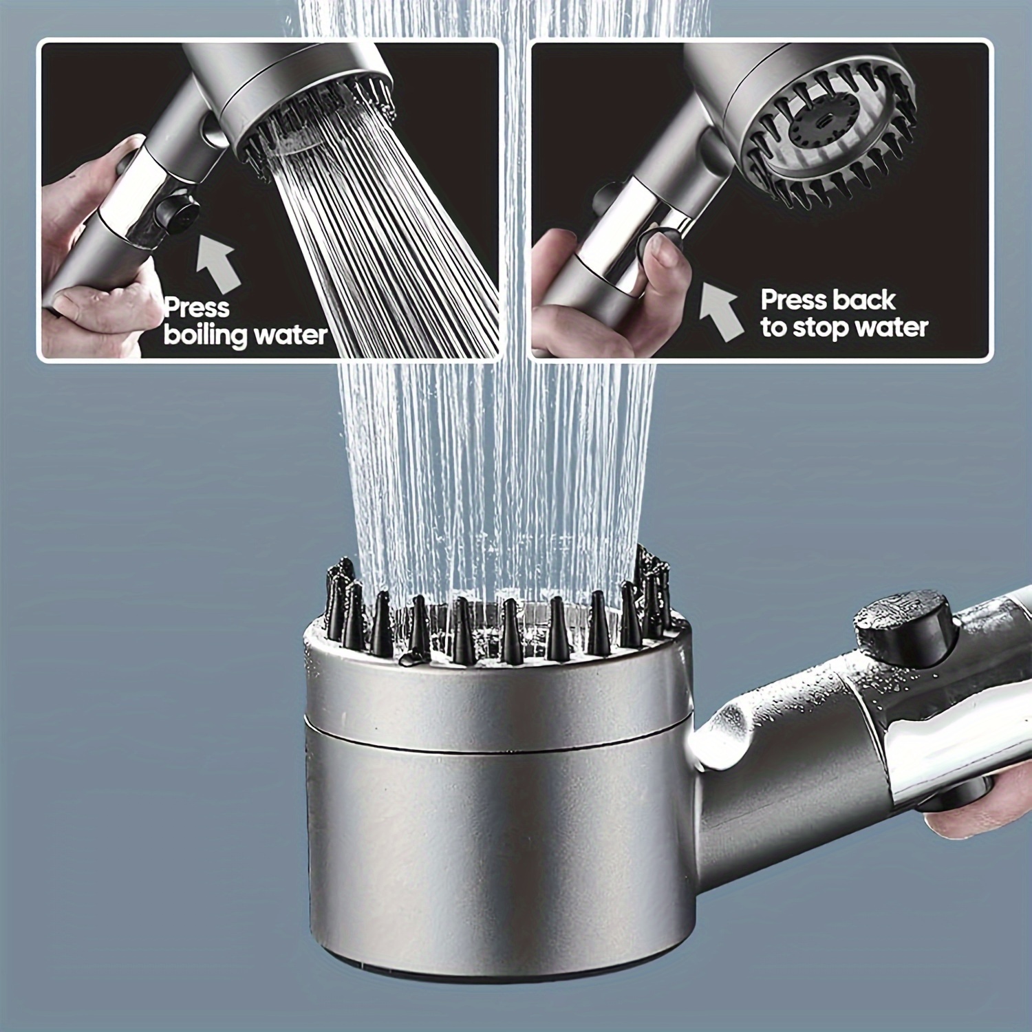 3-in-1 Handheld Shower Head with Scalp Massager, 4-in-1 Detachable Shower Head, High Pressure Water Filter, Plastic, Round Shape, for Skin & Hair Care, Softens Hard Water, Kitchen & Bathroom Accessory