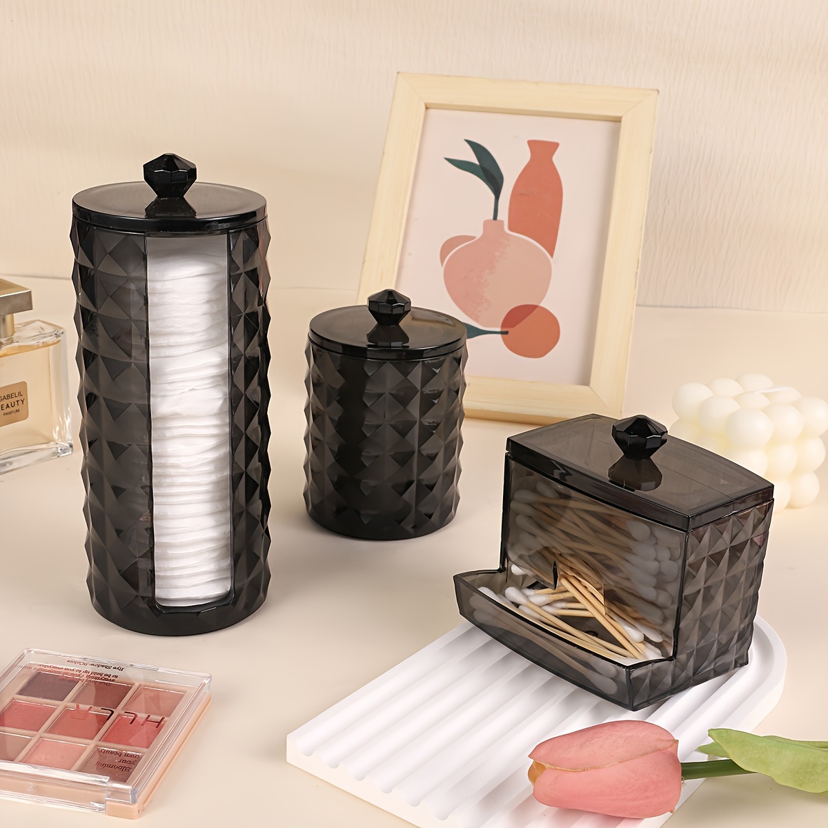 3 Swab Racks, Bathroom Dispenser, Ball Storage Box, Swabs, Round Pads And Floss Picks, Clear Storage Jar with Lid, Home Organization And Storage Supplies, Storage Bins for Home Organization, Baskets, Bins & Containers for Hom